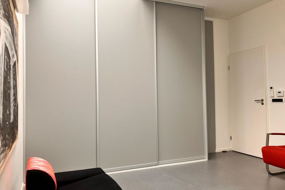 De centrale gang bij deze kamer heeft een royale kastenwand voor extra bergruimte.