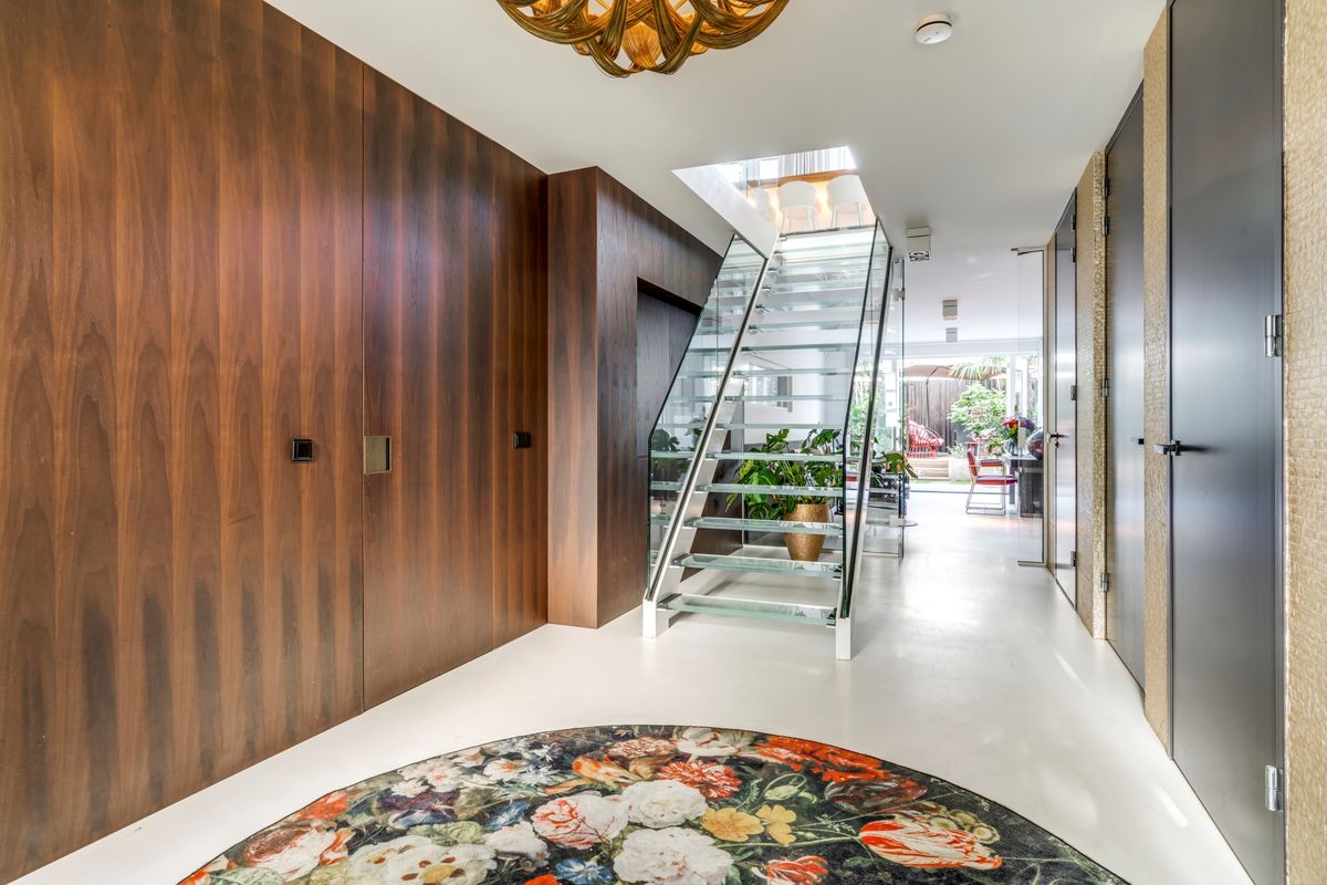 Wat u verder opvalt op de begane grond is dat de gehele etage is voorzien van vloerverwarming, een royaal toilet, de lift maar ook de glazen trap is een eyecatcher.