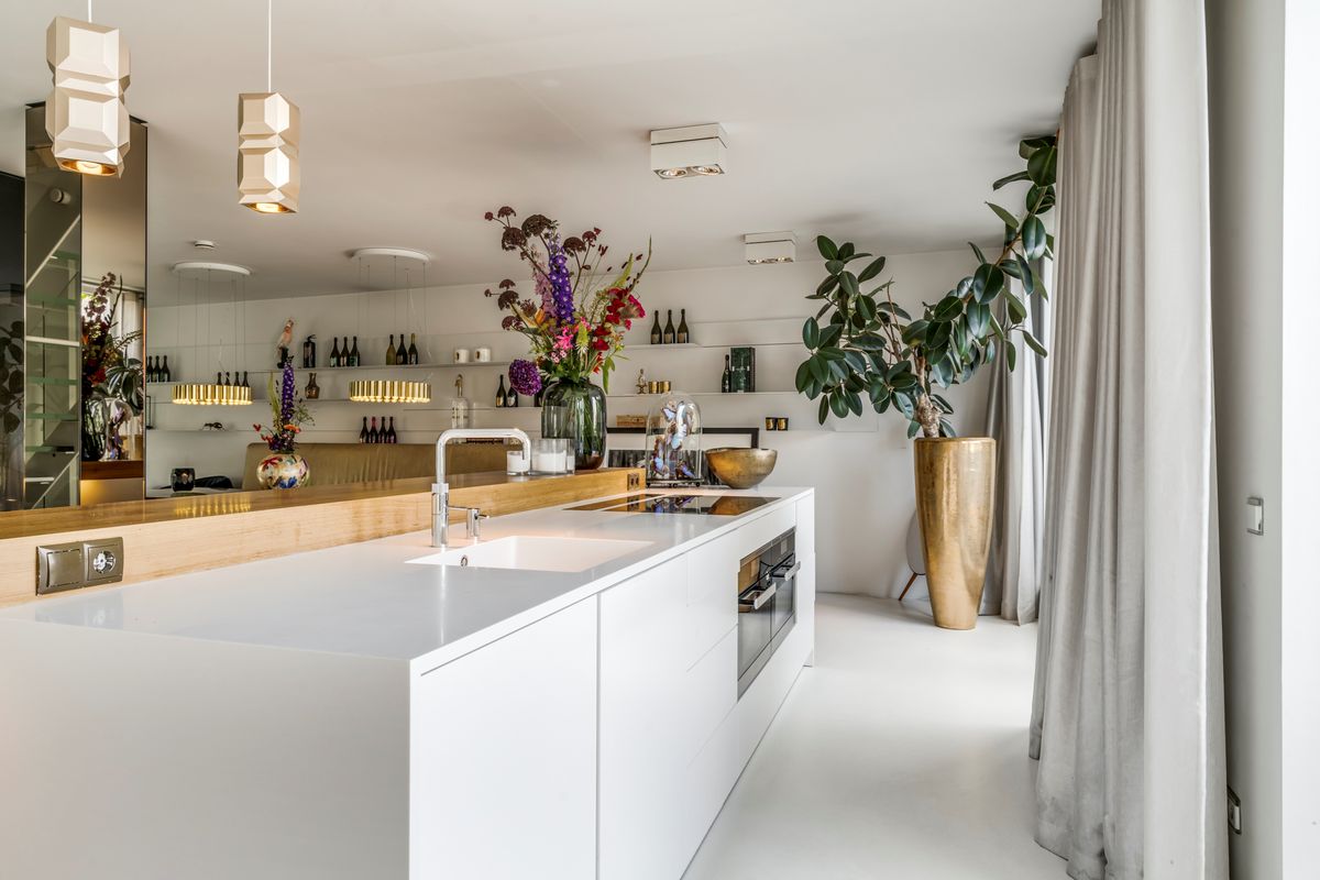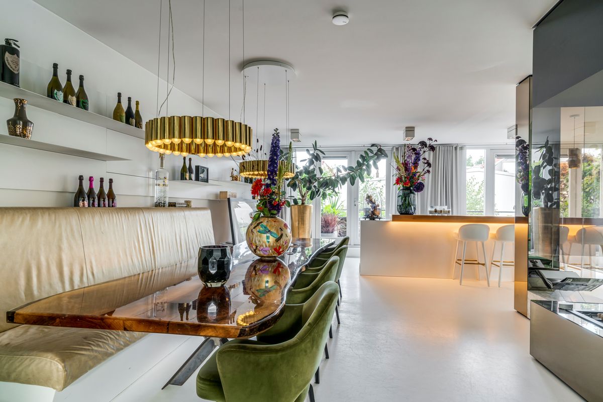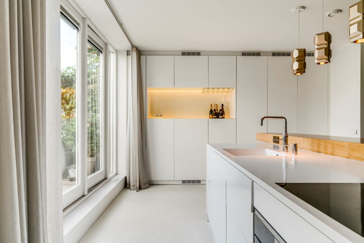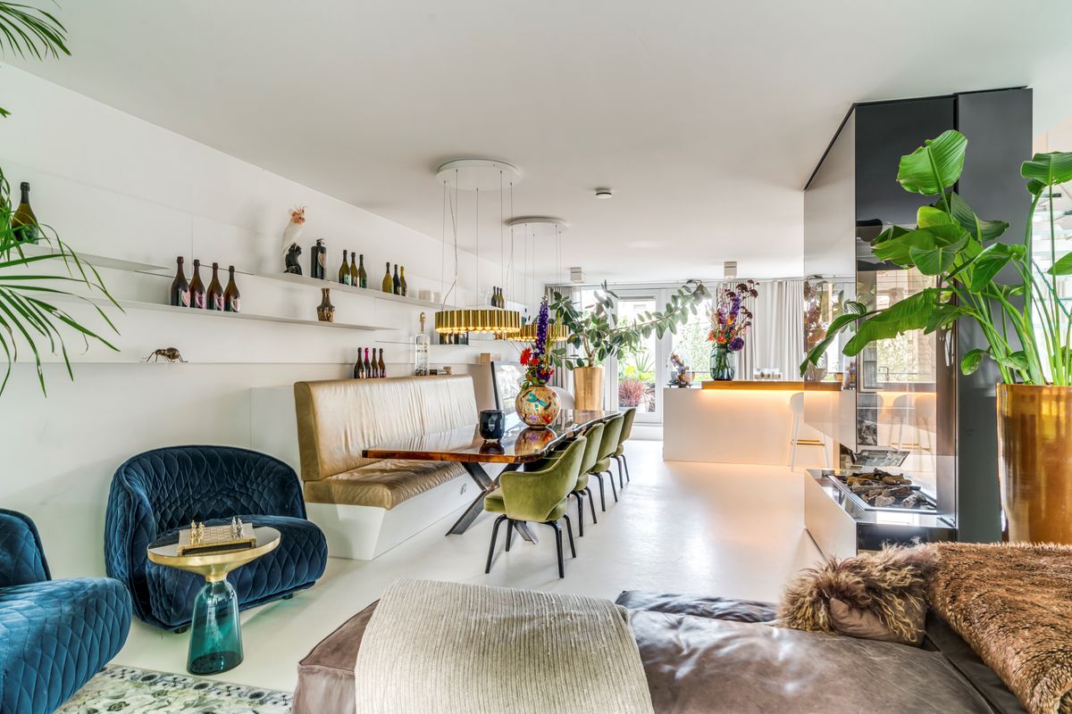 Op de eerste verdieping bent u op de woonetage aangekomen. De keuken met bar staat centraal, hier bevinden zich openslaande deuren naar het zonnige terras. De keuken is voorzien van alle gemakken: inductie kookplaat met ingebouwde afzuigkap, quooker, stoomoven, combi-oven, koelkast en vriezer etc. In het eetgedeelte bevindt zich de open haard welke voor extra sfeer en warmte zorgt op deze etage. Aan de voorzijde treft u de royale zitkamer.
