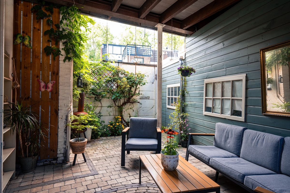 Entree, hal met meterkast, super fijne, brede woonkamer met veel lichtinval en kunststof kozijnen. Keuken met vaatwasser, koelvriescombinatie, cv-ketel en gasfornuis met afzuigkap. De badkamer met douche, wastafel en toilet is geheel gerenoveerd in 2023. De slaapkamer met openslaande deuren naar de overkapte tuin geeft enorm veel sfeer. Tevens is er nog een aparte berging.