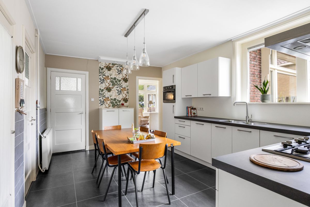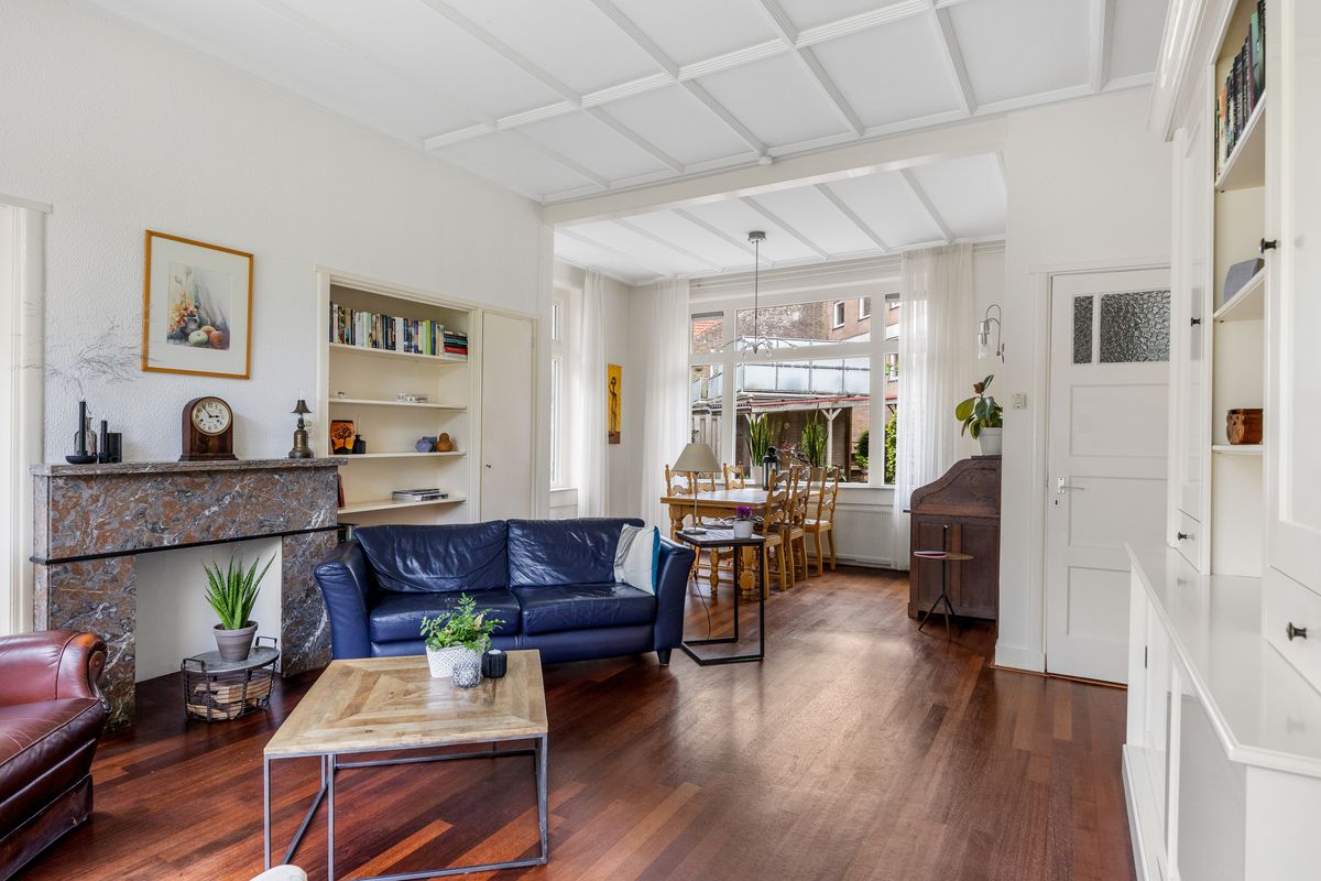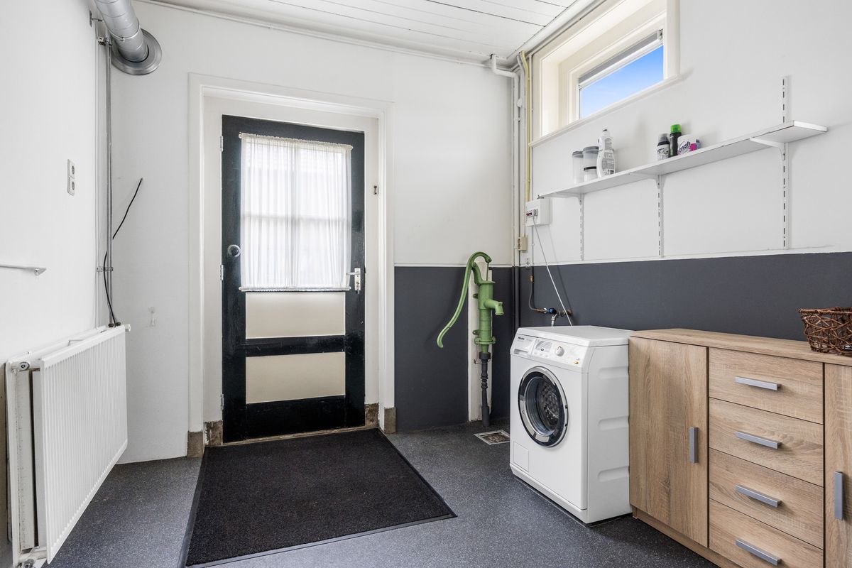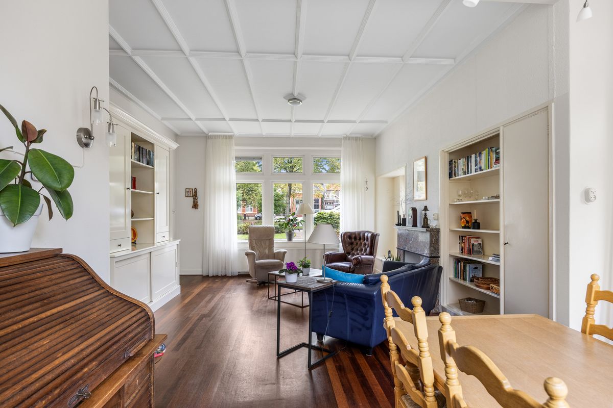 Entree, klassieke hal met schoonmetselwerk en "oude tegeltjes", meterkast, toilet en de trapopgang. De woonkamer met schouw heeft veel lichtinval door de grote ramen aan de voor- en achterzijde. Aan de andere kant van de ruime hal aan de voorzijde van de woning bevindt zich tevens een royale werkkamer of eventueel slaapkamer met inbouwkasten. Deze ruimte is ook in te richten als kantoor/praktijkruimte. De ruime woonkeuken is centraal in de woning gelegen met een keuken in hoekopstelling, voorzien van diverse inbouwapparatuur. Vanuit de keuken is er toegang tot de bijkeuken/werkkamer, de grote kelder en de wasruimte. In de wasruimte bevinden zich de aansluitingen voor het witgoed en hier is ook een 2e toilet aanwezig. Middels een vlizotrap is er toegang naar de bergzolder. De bijkeuken/werkkamer met praktische afmetingen is voorzien van een kastenwand. De ruime kelder met natuurlijke lichtinval en ventilatie biedt voldoende ruimte voor diverse hobby's of opslag.