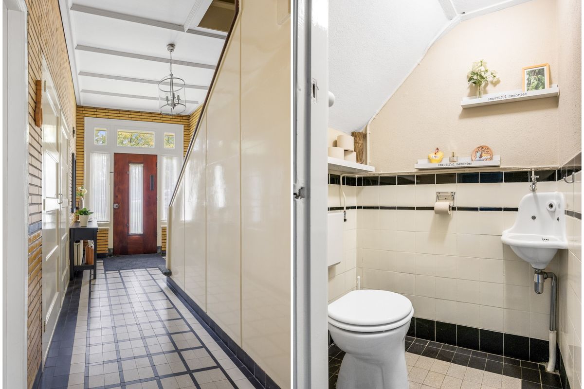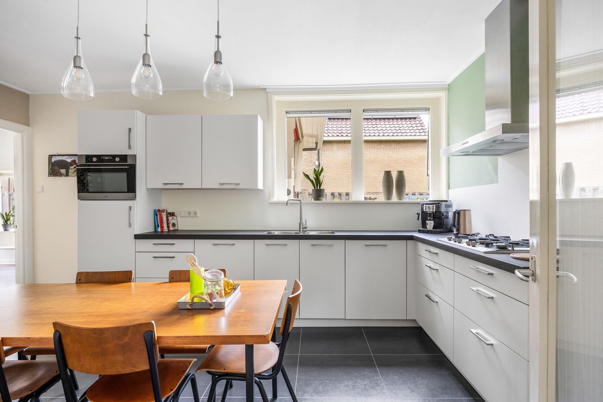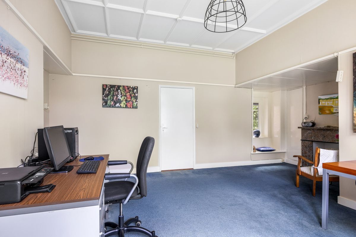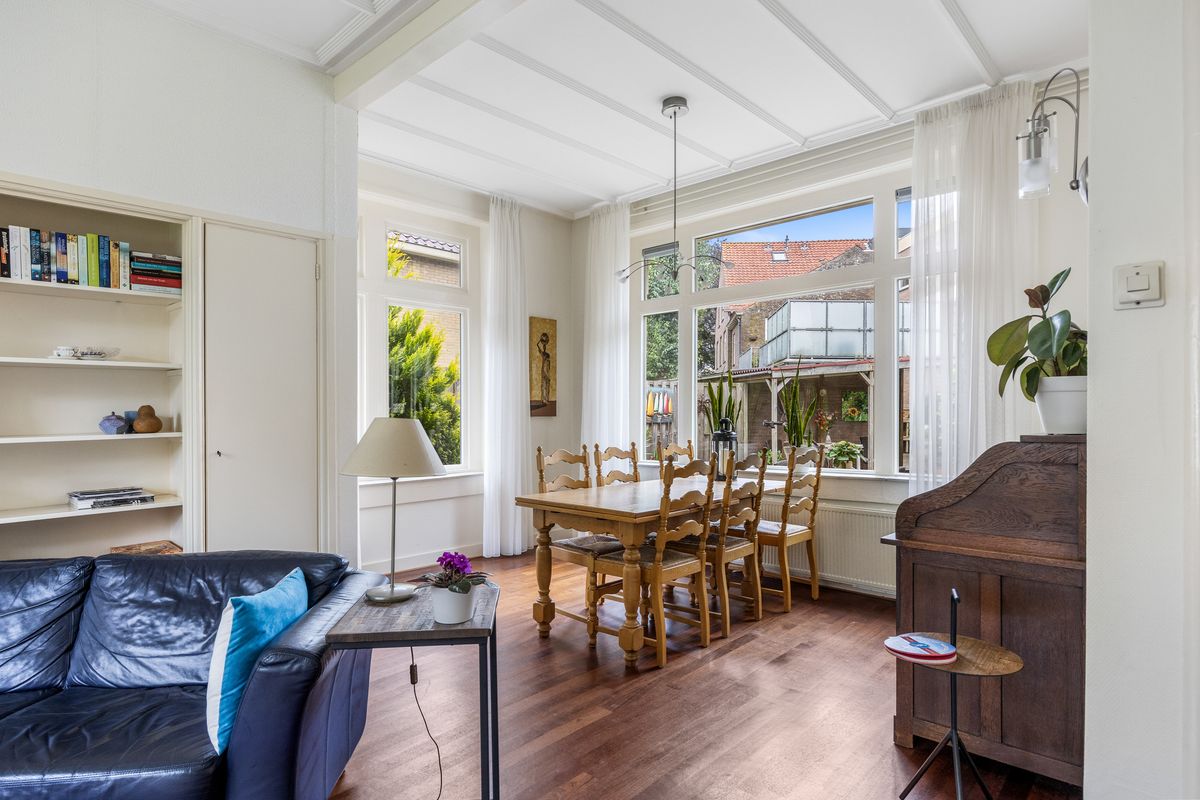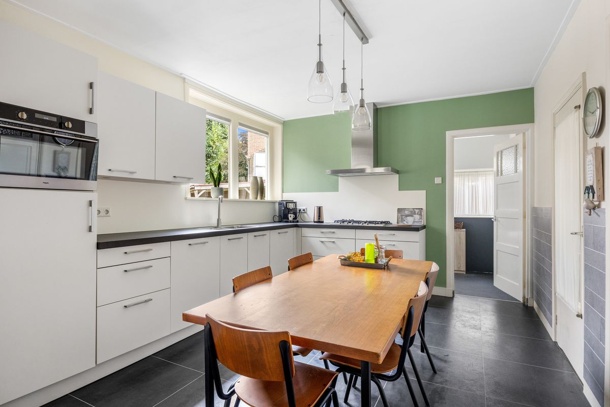 Entree, klassieke hal met schoonmetselwerk en "oude tegeltjes", meterkast, toilet en de trapopgang. De woonkamer met schouw heeft veel lichtinval door de grote ramen aan de voor- en achterzijde. Aan de andere kant van de ruime hal aan de voorzijde van de woning bevindt zich tevens een royale werkkamer of eventueel slaapkamer met inbouwkasten. Deze ruimte is ook in te richten als kantoor/praktijkruimte. De ruime woonkeuken is centraal in de woning gelegen met een keuken in hoekopstelling, voorzien van diverse inbouwapparatuur. Vanuit de keuken is er toegang tot de bijkeuken/werkkamer, de grote kelder en de wasruimte. In de wasruimte bevinden zich de aansluitingen voor het witgoed en hier is ook een 2e toilet aanwezig. Middels een vlizotrap is er toegang naar de bergzolder. De bijkeuken/werkkamer met praktische afmetingen is voorzien van een kastenwand. De ruime kelder met natuurlijke lichtinval en ventilatie biedt voldoende ruimte voor diverse hobby's of opslag.