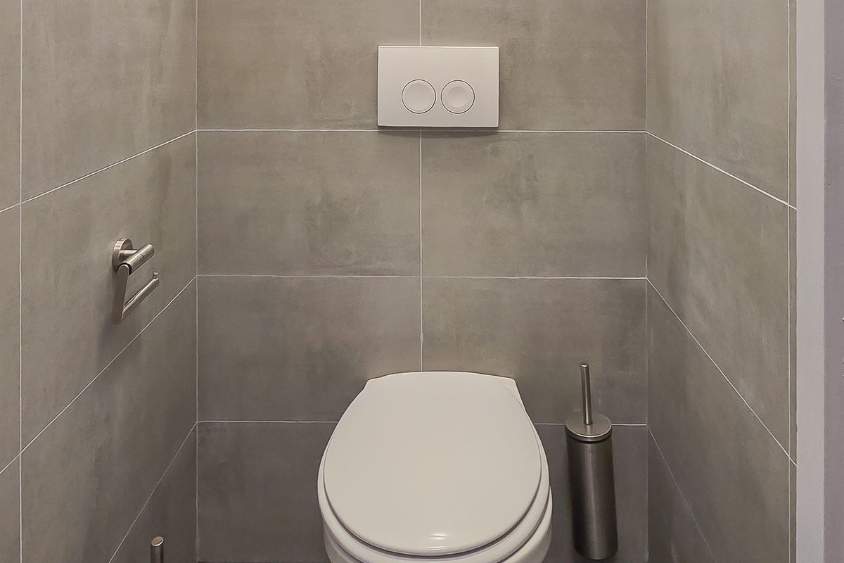 De afgesloten keuken beschikt over moderne inbouwapparatuur en een handig kiep-/kantelraam dat zorgt voor extra licht en ventilatie. De nette badkamer is voorzien van een inloopdouche, wastafel en toilet. Daarnaast is er een separaat gastentoilet aanwezig.