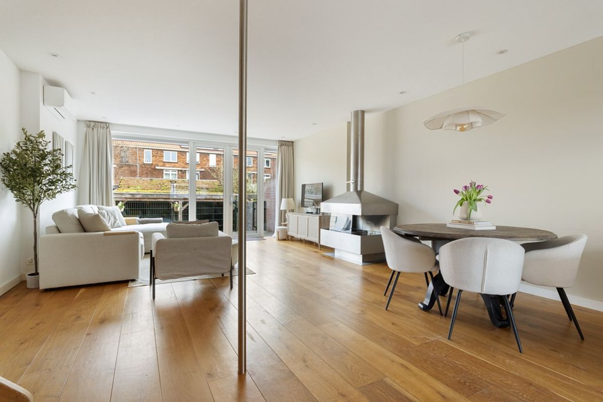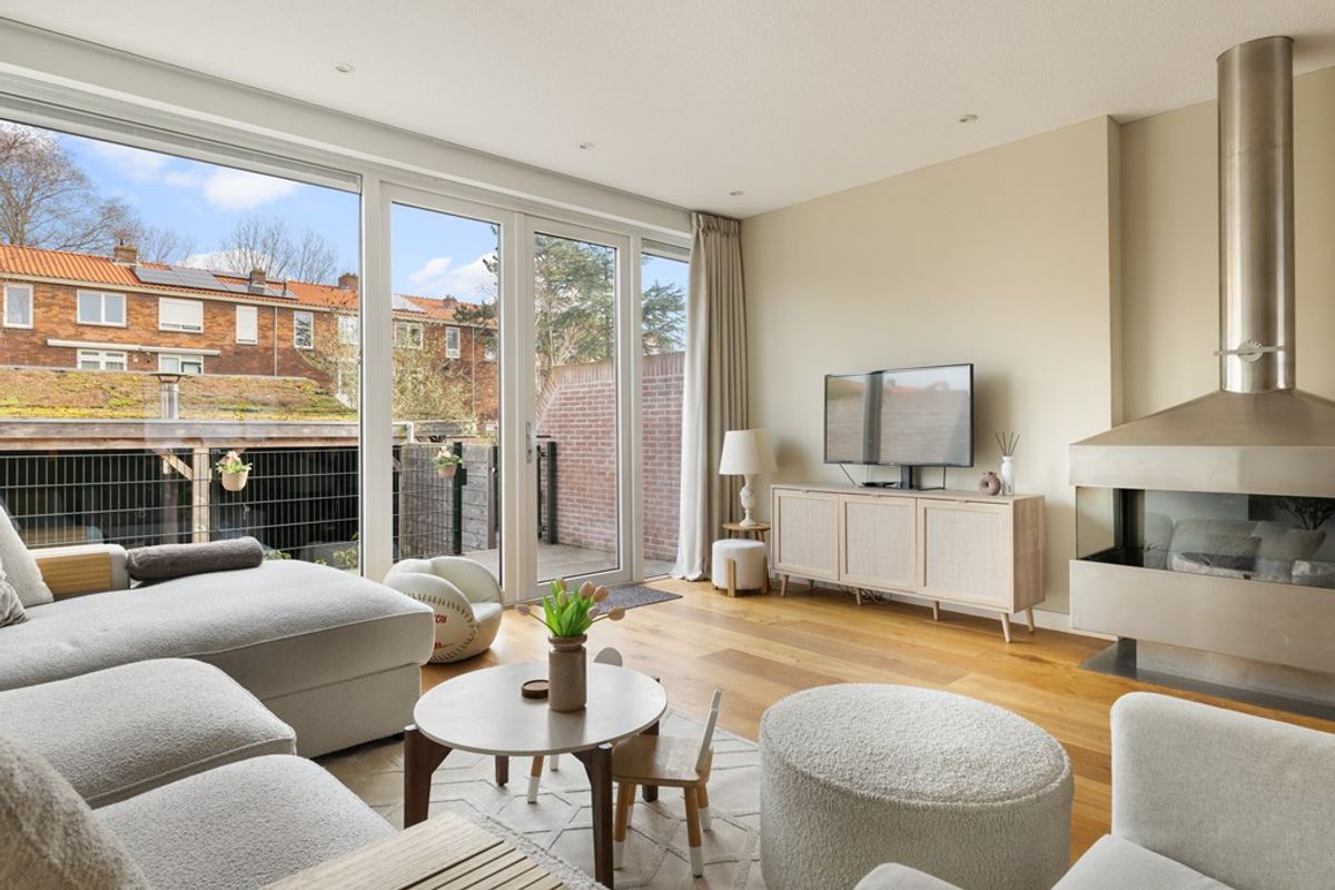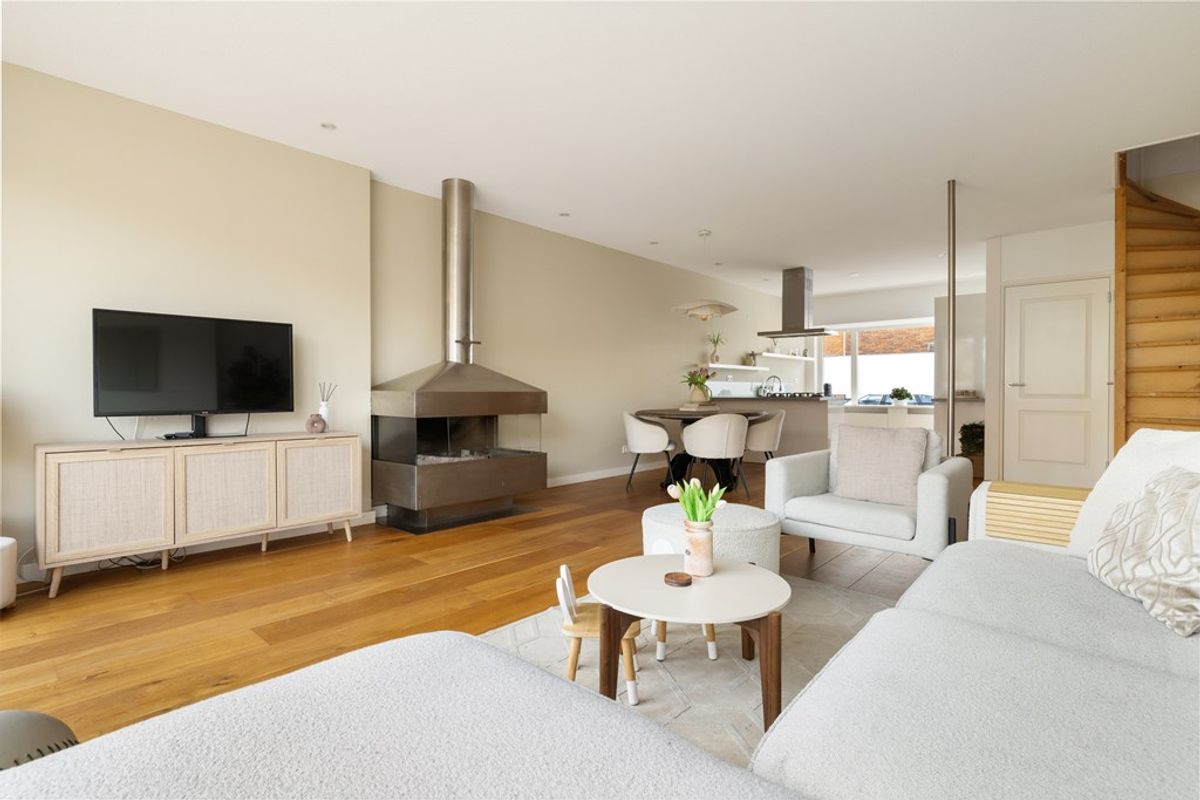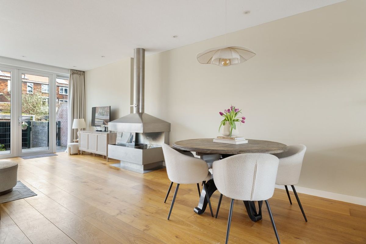 Bij binnenkomst valt direct de charmante uitstraling op, gecombineerd met een moderne afwerking. De ruime woonkamer is heerlijk licht en voorzien van een sfeervolle open haard en met openslaande deuren naar eigen terras die zorgt voor een mooie verbinding met de tuin. Dankzij de grote raampartijen geniet de woning van een prachtige lichtinval, wat zorgt voor een ruimtelijk en open gevoel in huis. De houten vloer geeft het geheel een warme en tijdloze uitstraling en vormt een perfecte basis voor ieder interieur. De gehele woning is goed onderhouden wat bijdraagt aan het moderne wooncomfort.