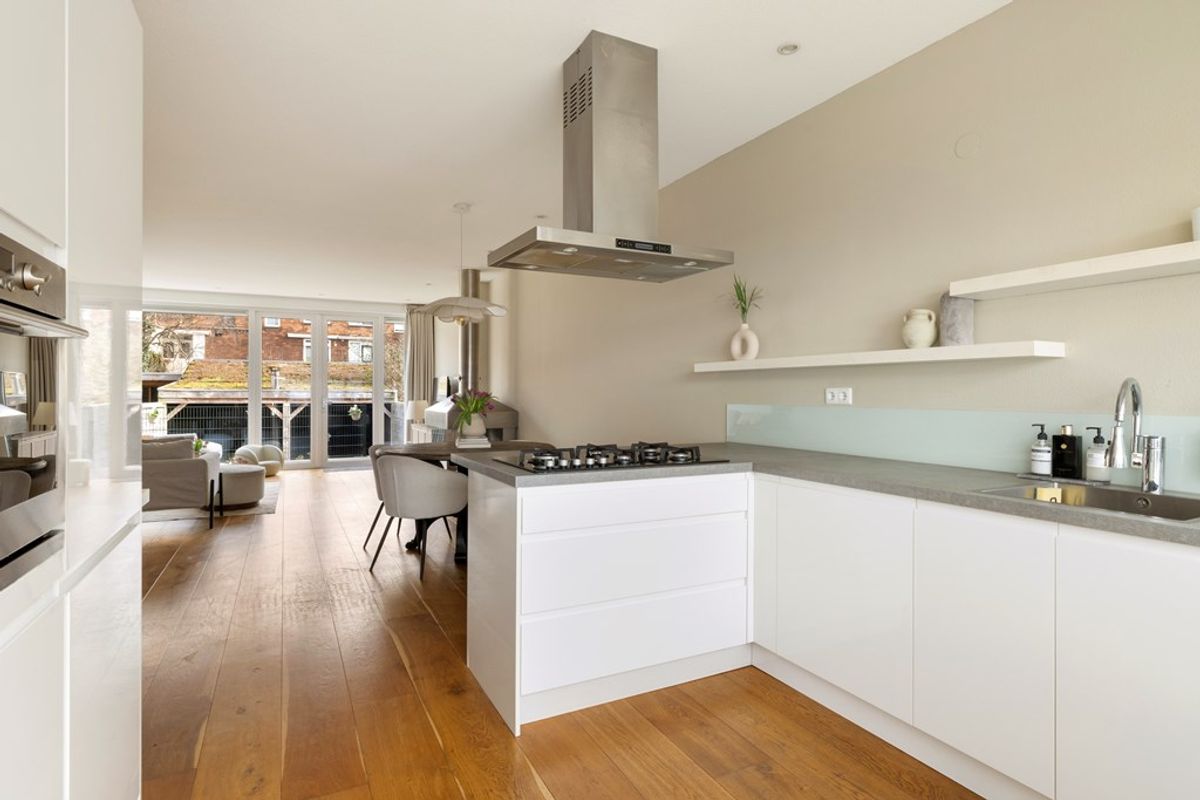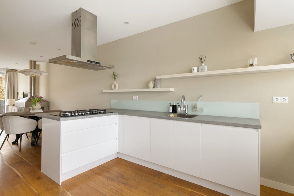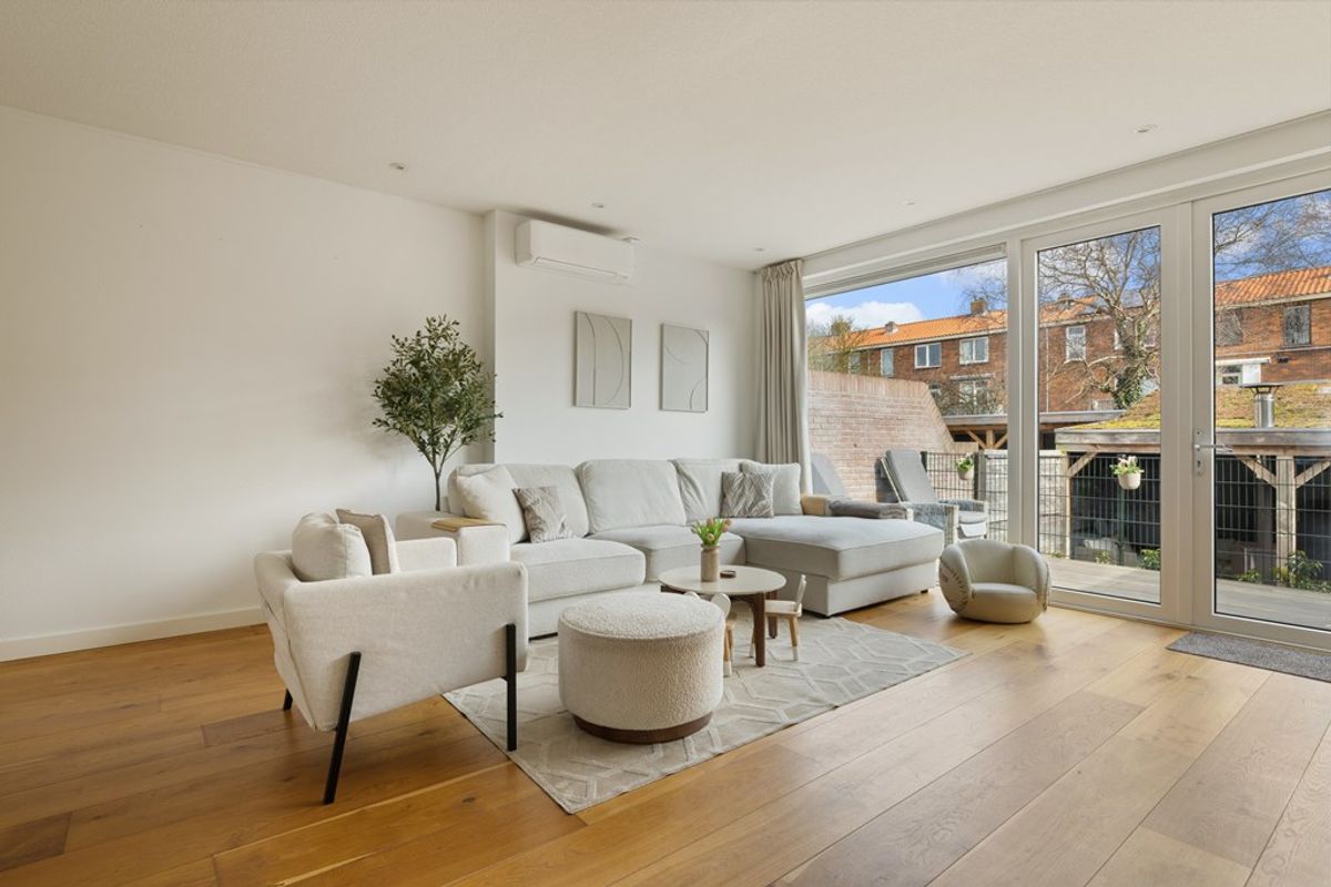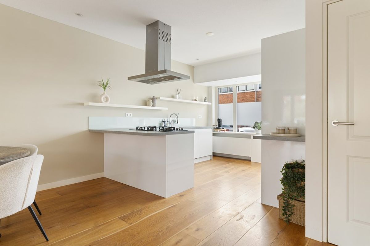 Bij binnenkomst valt direct de charmante uitstraling op, gecombineerd met een moderne afwerking. De ruime woonkamer is heerlijk licht en voorzien van een sfeervolle open haard en met openslaande deuren naar eigen terras die zorgt voor een mooie verbinding met de tuin. Dankzij de grote raampartijen geniet de woning van een prachtige lichtinval, wat zorgt voor een ruimtelijk en open gevoel in huis. De houten vloer geeft het geheel een warme en tijdloze uitstraling en vormt een perfecte basis voor ieder interieur. De gehele woning is goed onderhouden wat bijdraagt aan het moderne wooncomfort.