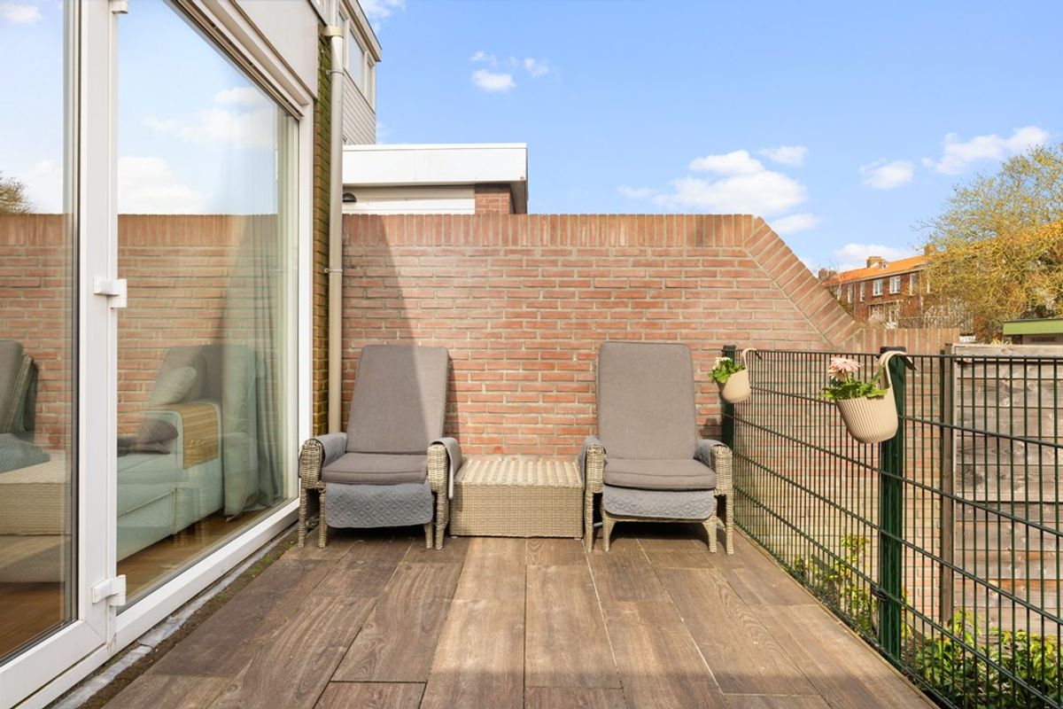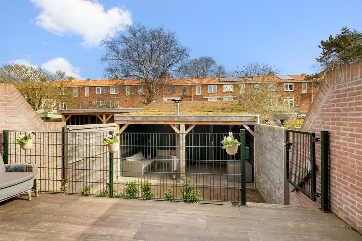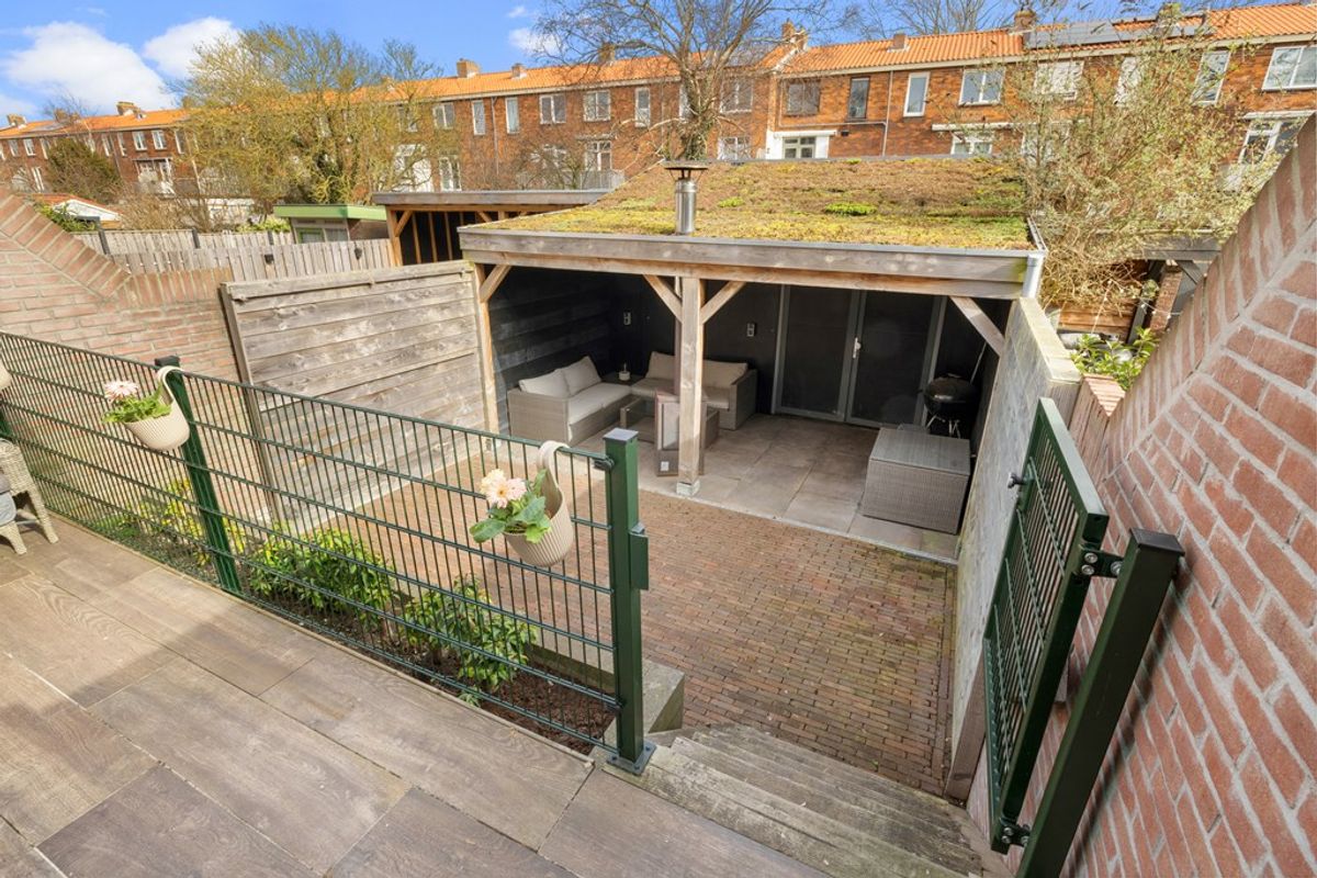 De diepe achtertuin van circa 50 vierkante meter biedt de hele dag zon en volop privacy. Hier kun je optimaal genieten van het buitenleven. De tuin beschikt daarnaast over een overkapping, een praktische berging en een handige achterom.