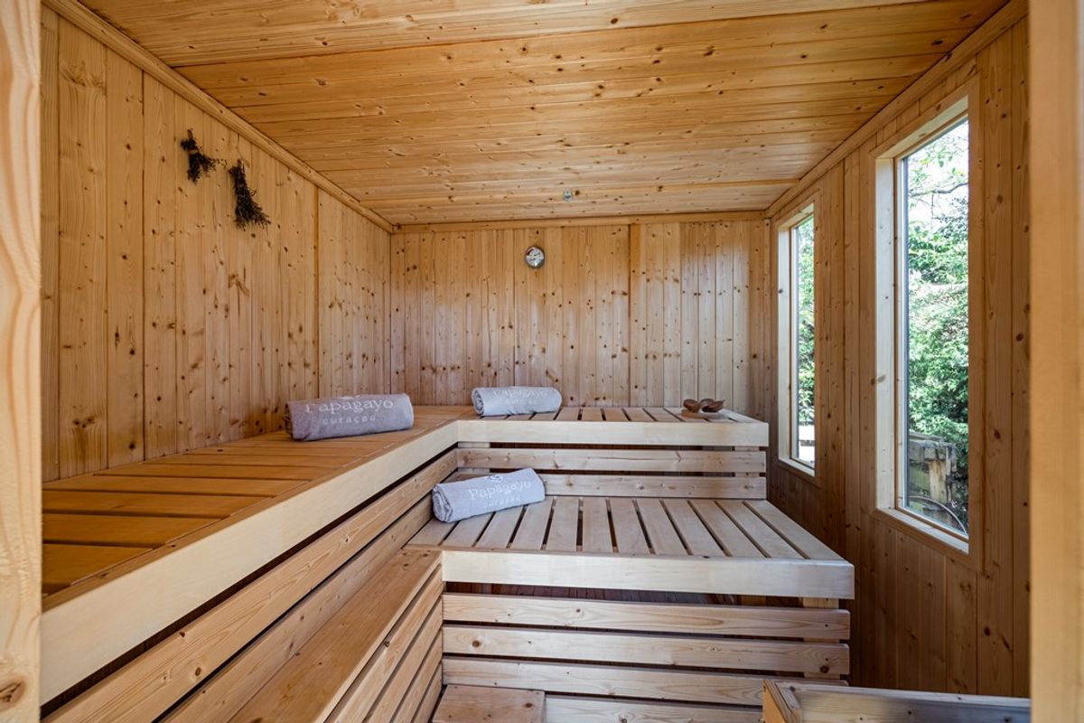 - Voorzieningen: Veranda met houtkachel/Jacuzzi/walk-in closet, Sauna/Quooker
