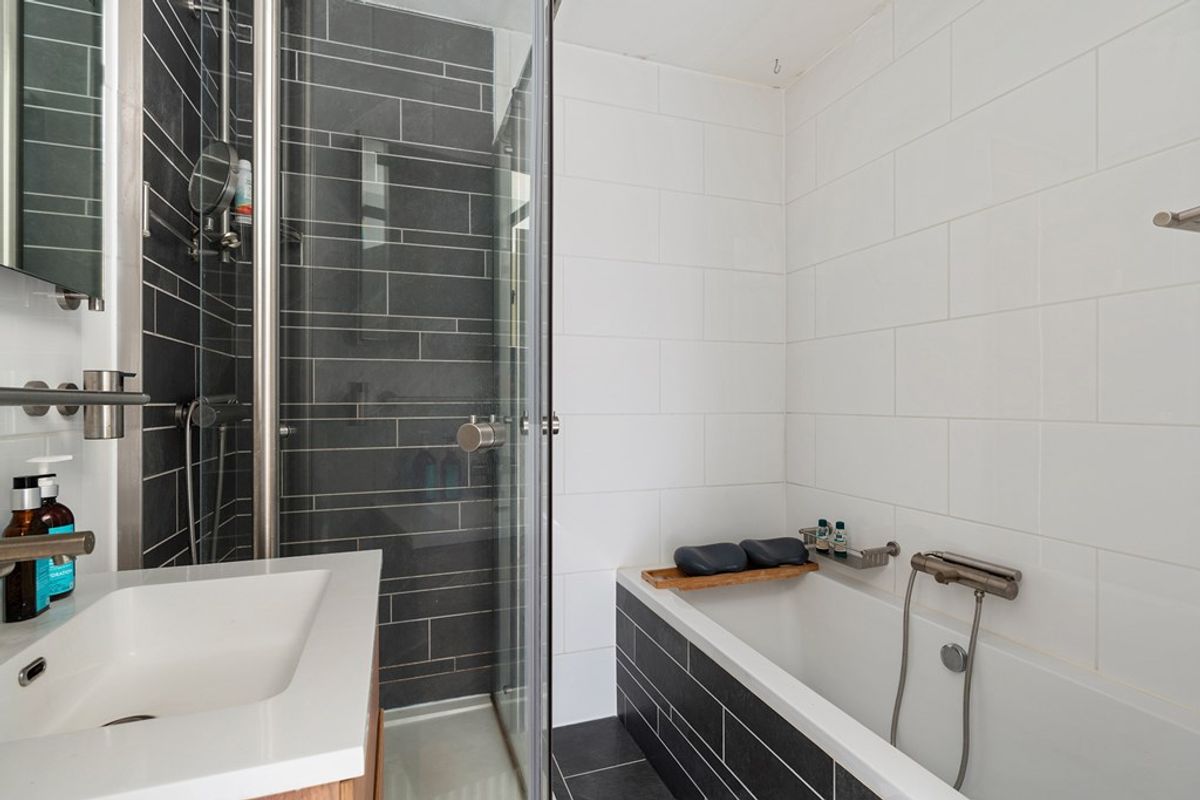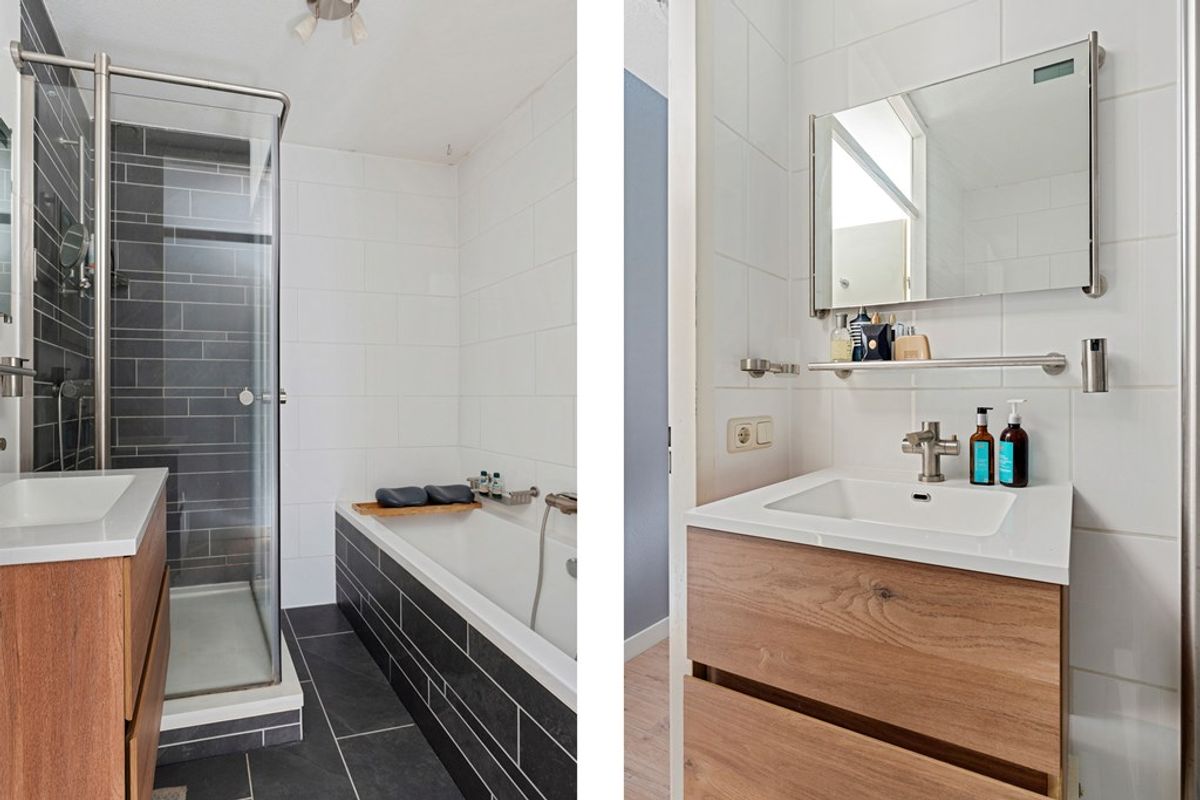 De badkamer is voorzien van een ligbad met douche, een wastafel en aansluitingen voor eventueel extra voorzieningen. Het toilet bevindt zich in een separate ruimte naast de badkamer, wat extra comfort biedt voor bewoners en gasten.