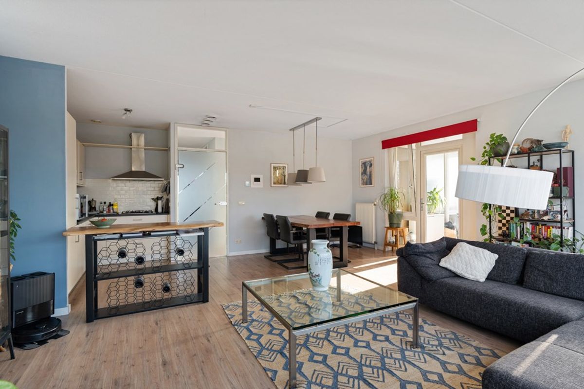 De woonkamer vormt het hart van de woning en heeft een oppervlakte van circa 35 m². Deze ruime living biedt volop mogelijkheden voor het creëren van een comfortabele zithoek en een gezellige eethoek. Dankzij de grote raampartijen komt er veel daglicht binnen, wat zorgt voor een aangename en open sfeer. Vanuit de woonkamer heeft u tevens toegang tot het balkon.
