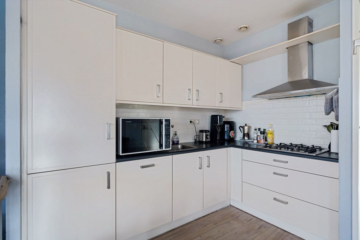 De keuken is compact maar praktisch ingericht en voorzien van diverse onder- en bovenkasten, een kookplaat, afzuigkap en spoelbak. De keuken biedt voldoende werkruimte en kan naar wens worden gemoderniseerd of uitgebreid.