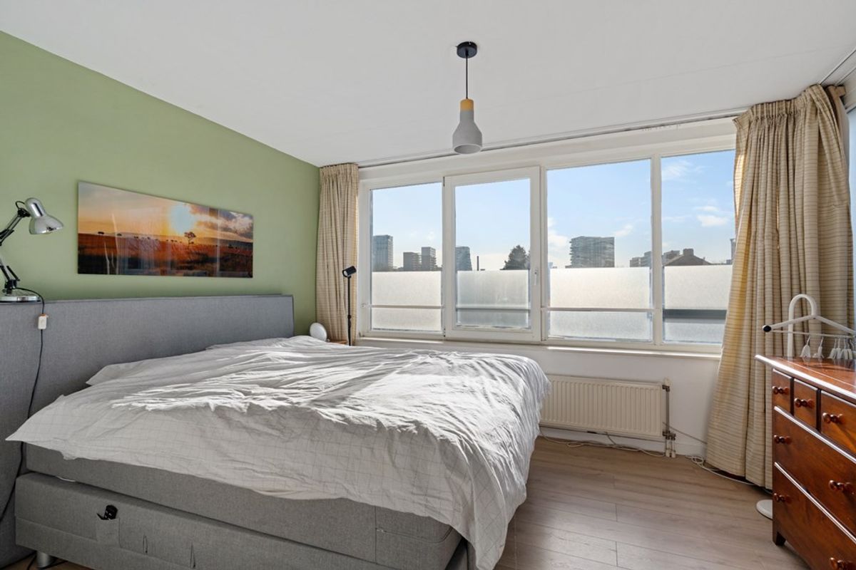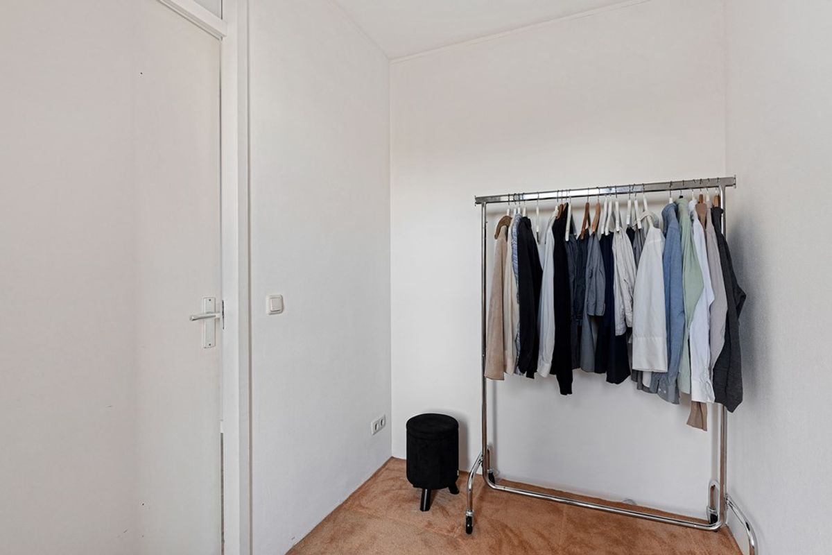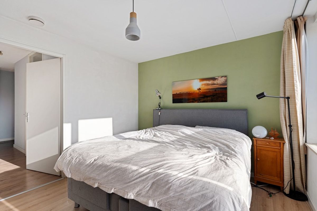 De slaapkamer van circa 13 m² is ruim opgezet en biedt voldoende ruimte voor een tweepersoonsbed, een grote kledingkast en eventueel een werkplek. Vanuit de slaapkamer is er eveneens toegang tot het balkon, wat zorgt voor extra licht en ventilatie.