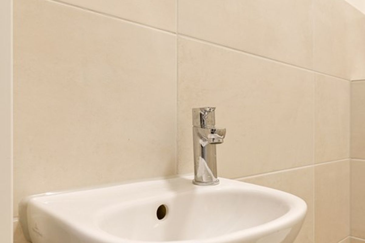 Vanuit de hal hebt u toegang tot het deels betegelde toilet, voorzien van een wastafel en een stijlvolle afwerking. Daarnaast is er een praktische berging met wasmachine, droger, vloerverwarming, WTW-unit en het ventilatiesysteem, wat bijdraagt aan een nette en functionele indeling.