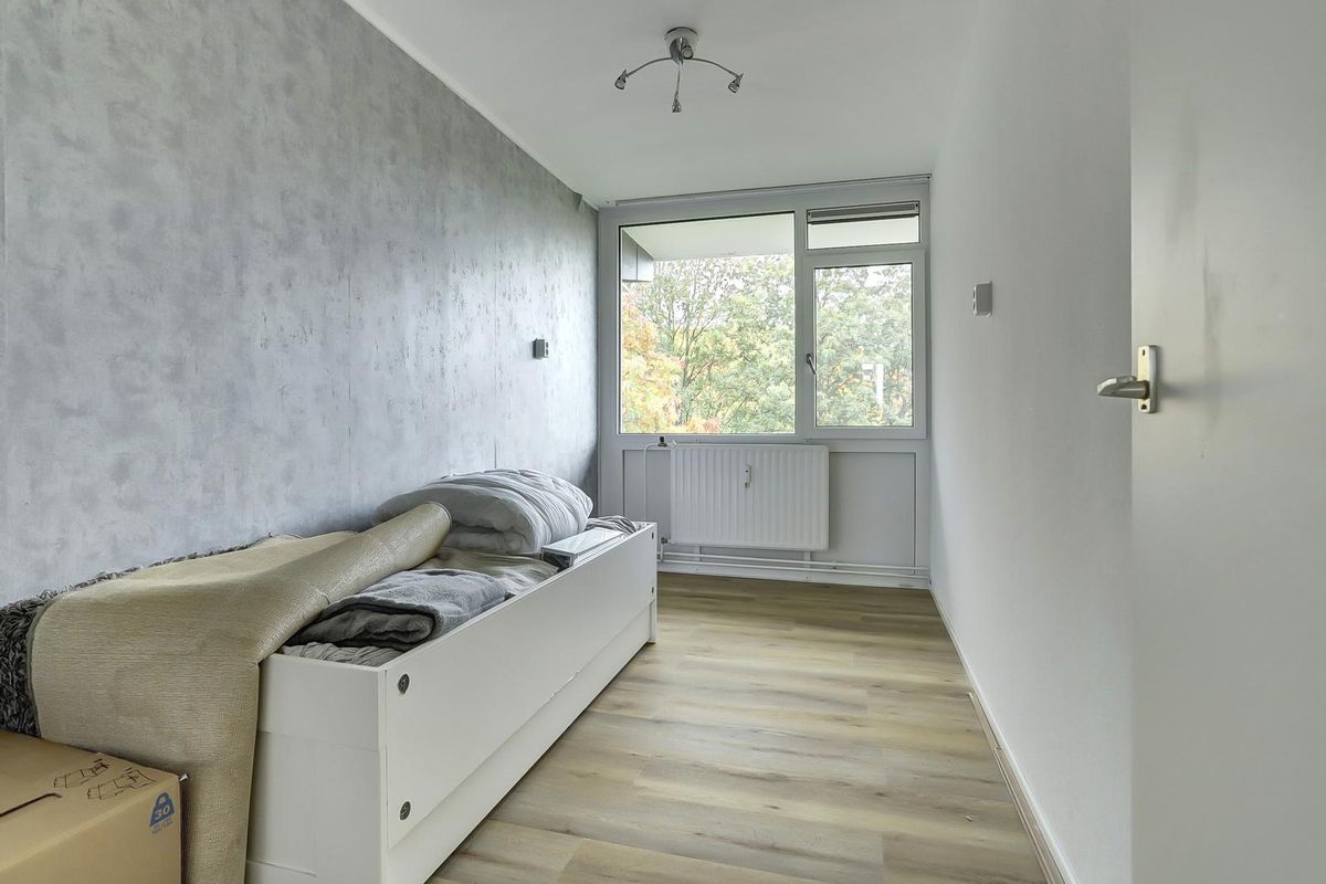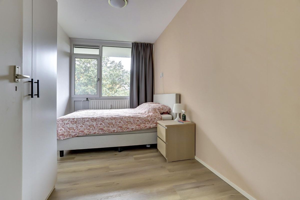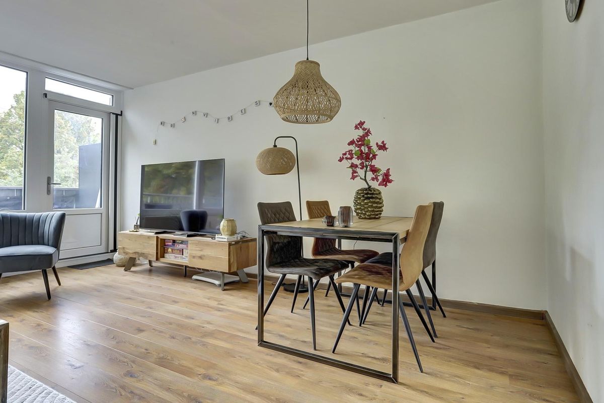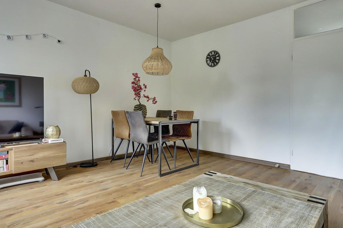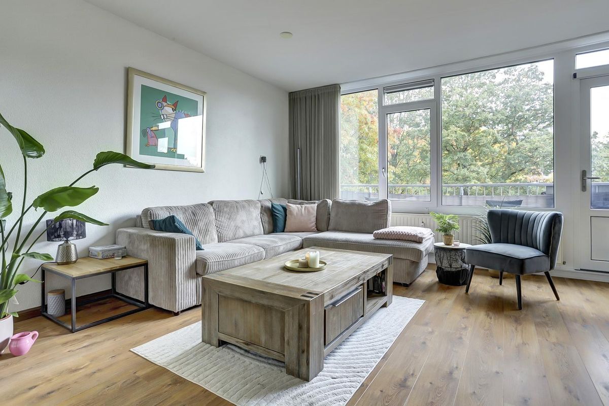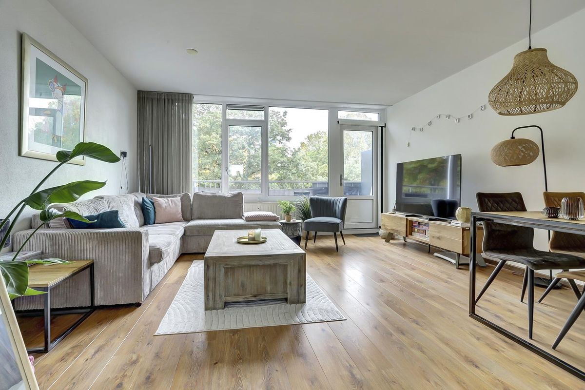 Het balkon op het zuiden is bereikbaar vanuit de woonkamer en vormt een fijne buitenruimte met veel privacy.