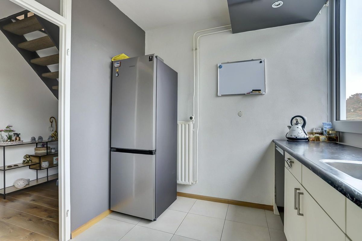 Via de hal/entree kom je in de lichte woonkamer met toegang tot het zonnige balkon – dé plek om heerlijk te genieten van een kop koffie in de ochtendzon. De dichte keuken in hoekopstelling is voorzien van een moderne keukeninrichting en biedt voldoende werk- en opbergruimte. Verder bevindt zich op deze verdieping de toiletruimte en de trapopgang naar boven.