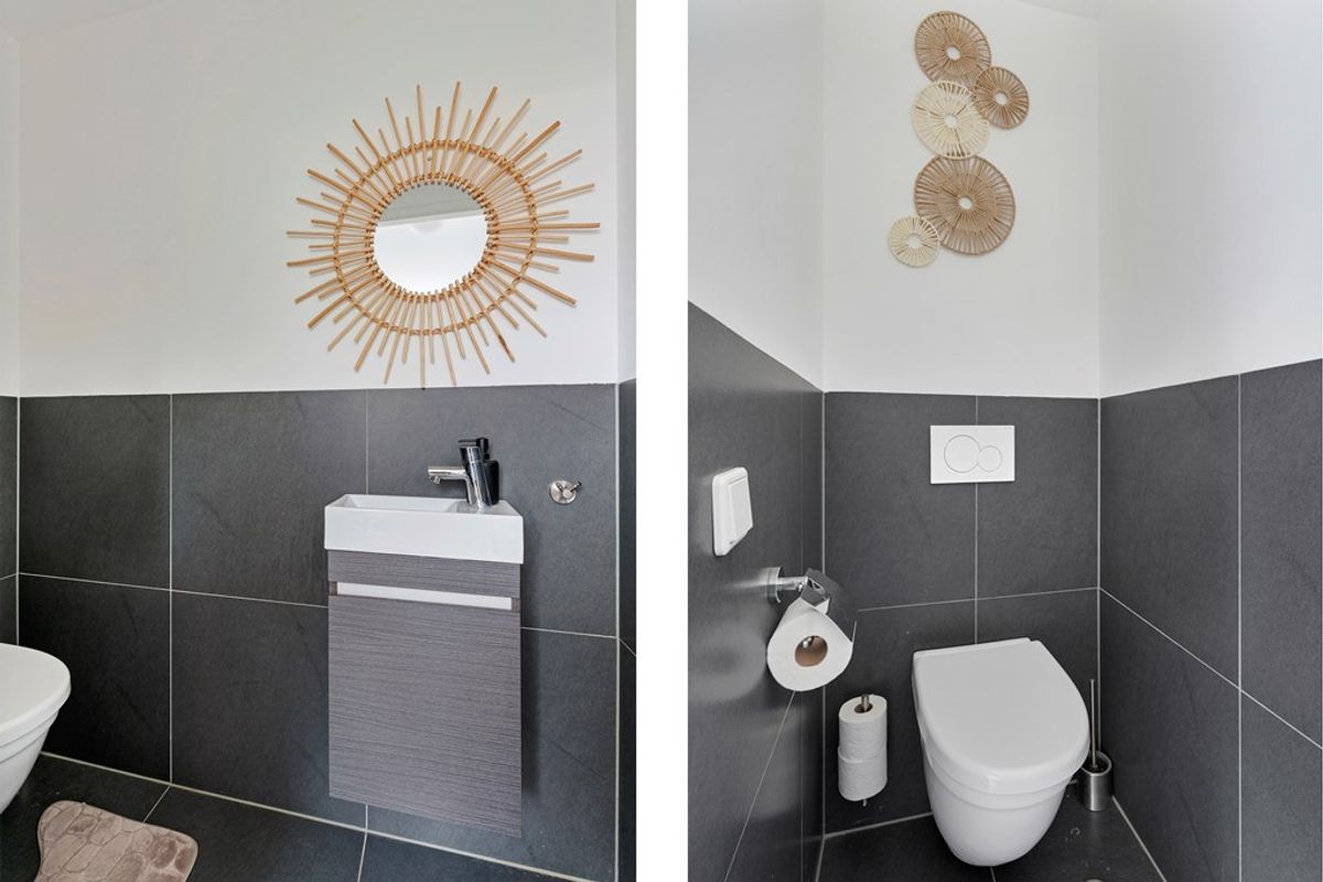 Upon entering, you are welcomed into the hallway with access to the meter cupboard, toilet, and staircase to the first floor. From the hallway, you enter the spacious and bright living room of approximately 29 m². Thanks to the large windows, the room benefits from an abundance of natural light, creating an open and inviting atmosphere. The living room offers ample space for both a comfortable seating area and a generous dining area.