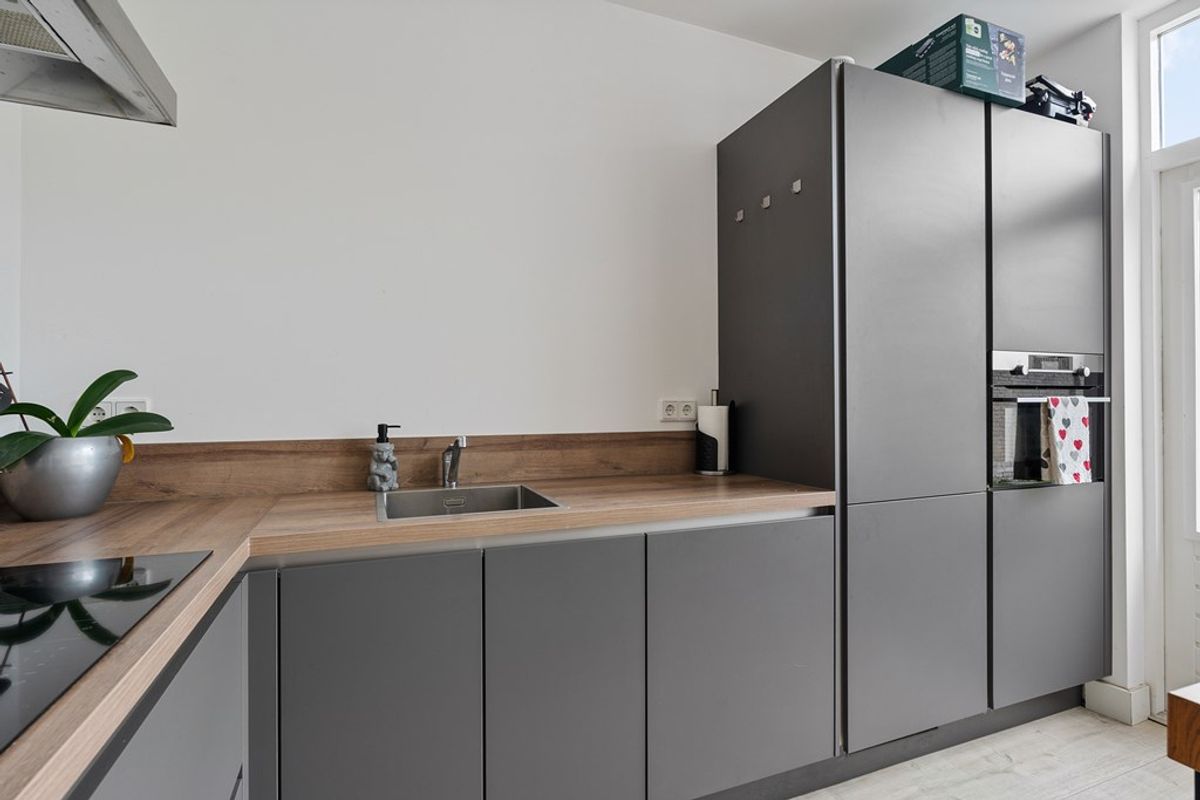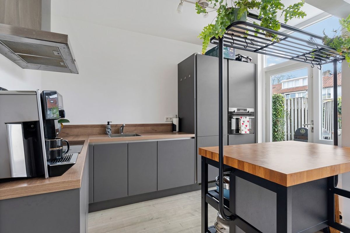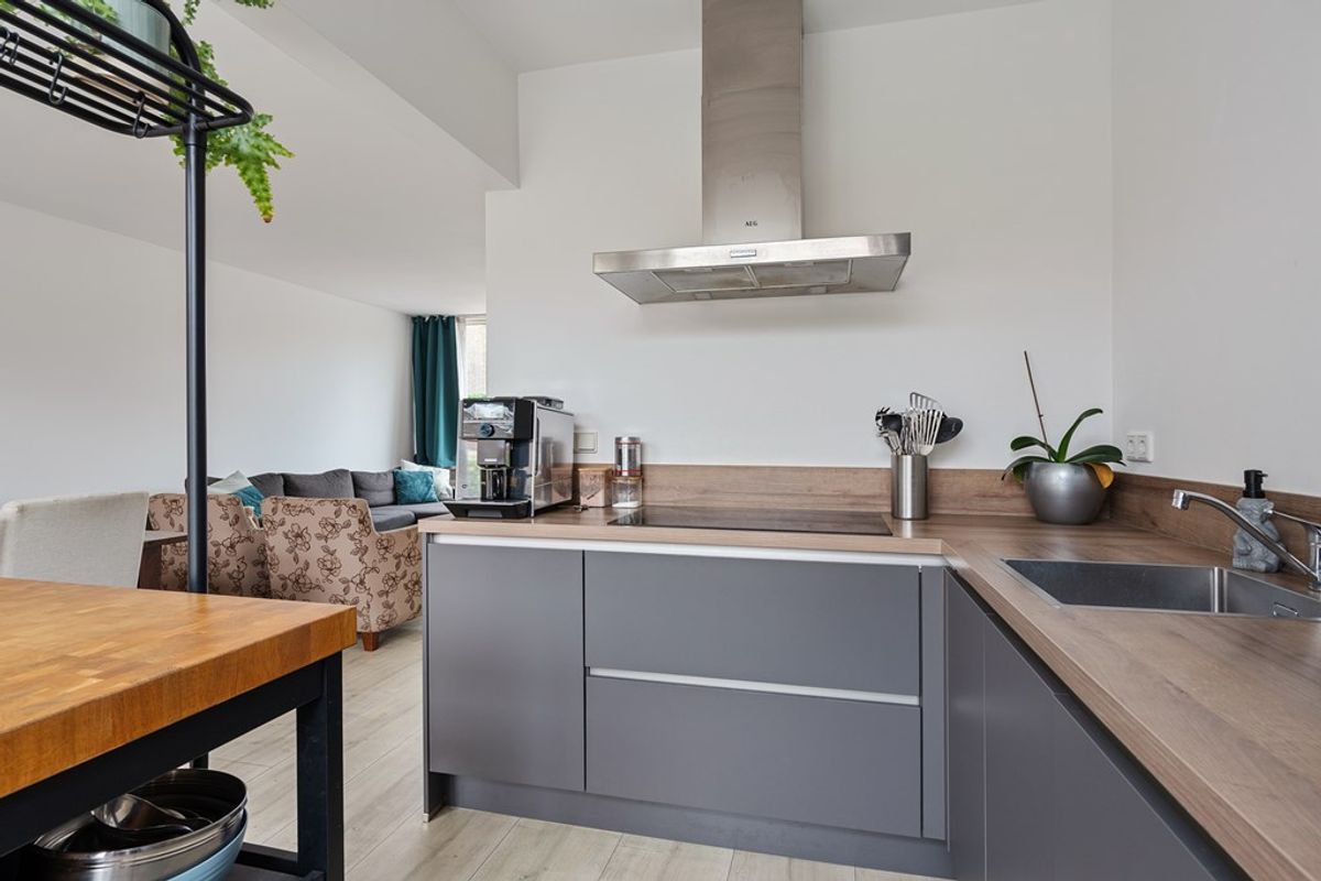 De aangrenzende keuken is praktisch ingericht en voorzien van diverse apparatuur zoals Inductie kookplaat, koelvries combinatie, vaatwasser, combi oven. Vanuit de keuken heeft u direct toegang tot de achtertuin.