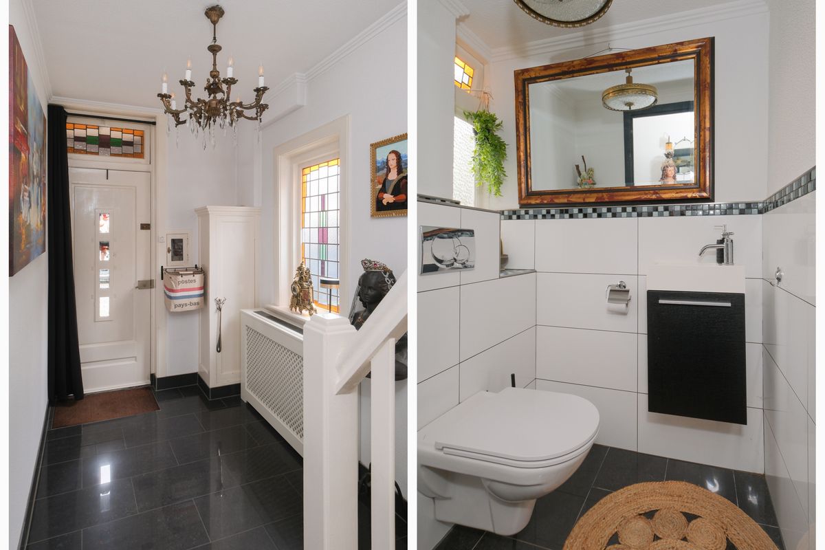 Indeling: begane grond: Via de ruime hal met een prachtige vloer en glas-in-loodramen kom je binnen. Het trappenhuis is een eyecatcher: strak afgewerkt, met een klassieke loper en mooie belijning. Geen overdaad, wél karakter.