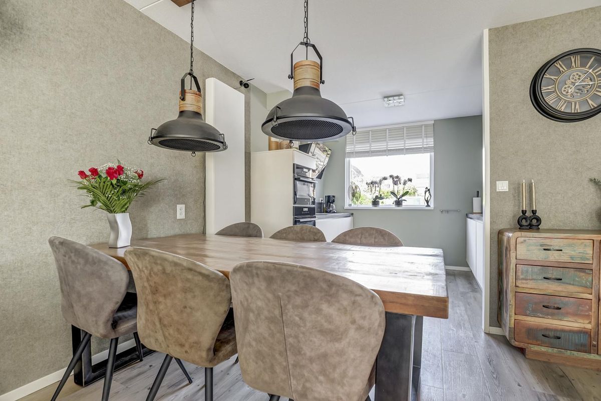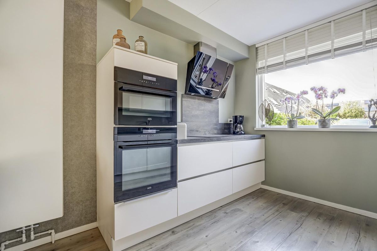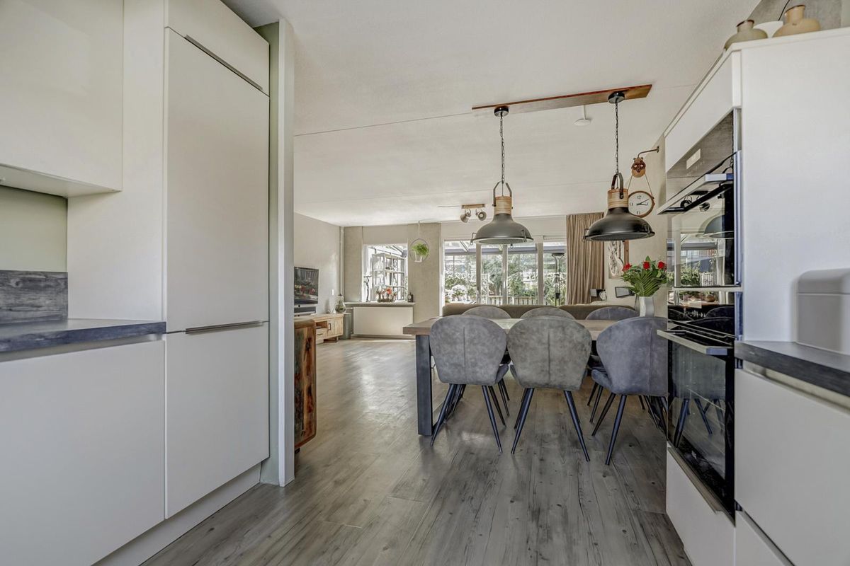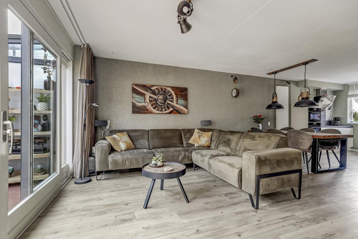 Vanuit de hal bereik je de sfeervolle woonkamer. Deze is voorzien van een trapkast, een fraaie pvc-vloer en een schuifpui naar de serre. Hier kun je al vroeg in het seizoen genieten van de warmte en het buitengevoel, terwijl je comfortabel beschut zit. De luxe open keuken aan de voorzijde is uitgerust met diverse inbouwapparatuur: een inductie kookplaat, een afzuigkap, een koelkast, een vriezer, een combimagnetron, een oven, een vaatwasser, een kokend waterkraan en volop kastruimte. Vanuit de serre loop je zo de zonnige achtertuin in, gelegen op het zuidoosten. De tuin grenst direct aan doorgaand vaarwater en beschikt over een eigen steiger. Ideaal om je eigen boot aan te leggen!
