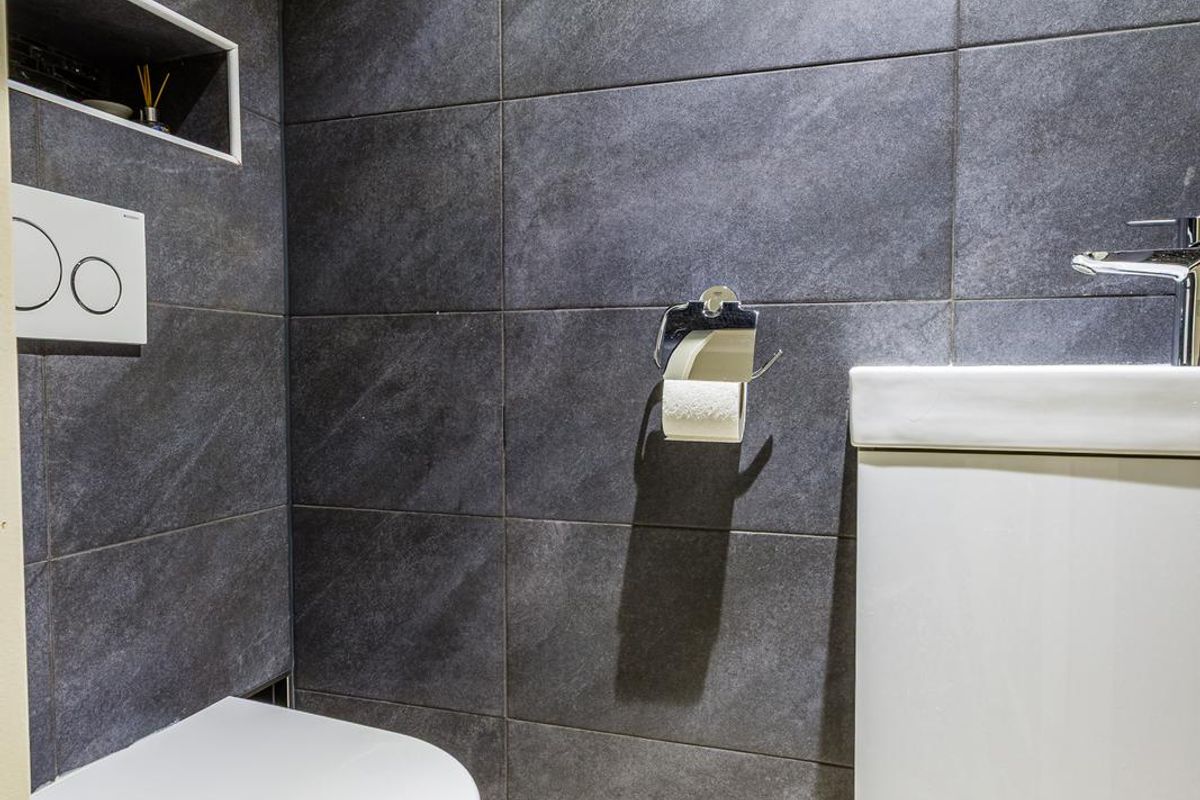 De badkamer heeft een centrale ligging op deze verdieping. Deze ruimte is in 2018 vernieuwd en straalt veel luxe uit. De badkamer is netjes betegeld en uitgerust met een zwevend toilet, badmeubel met dubbele wastafel en inloopdouche met regendouche. Ook vind je hier de aansluitingen voor de wasmachine en de droger.