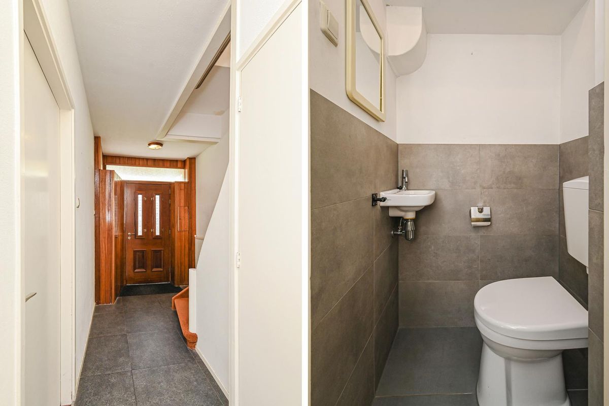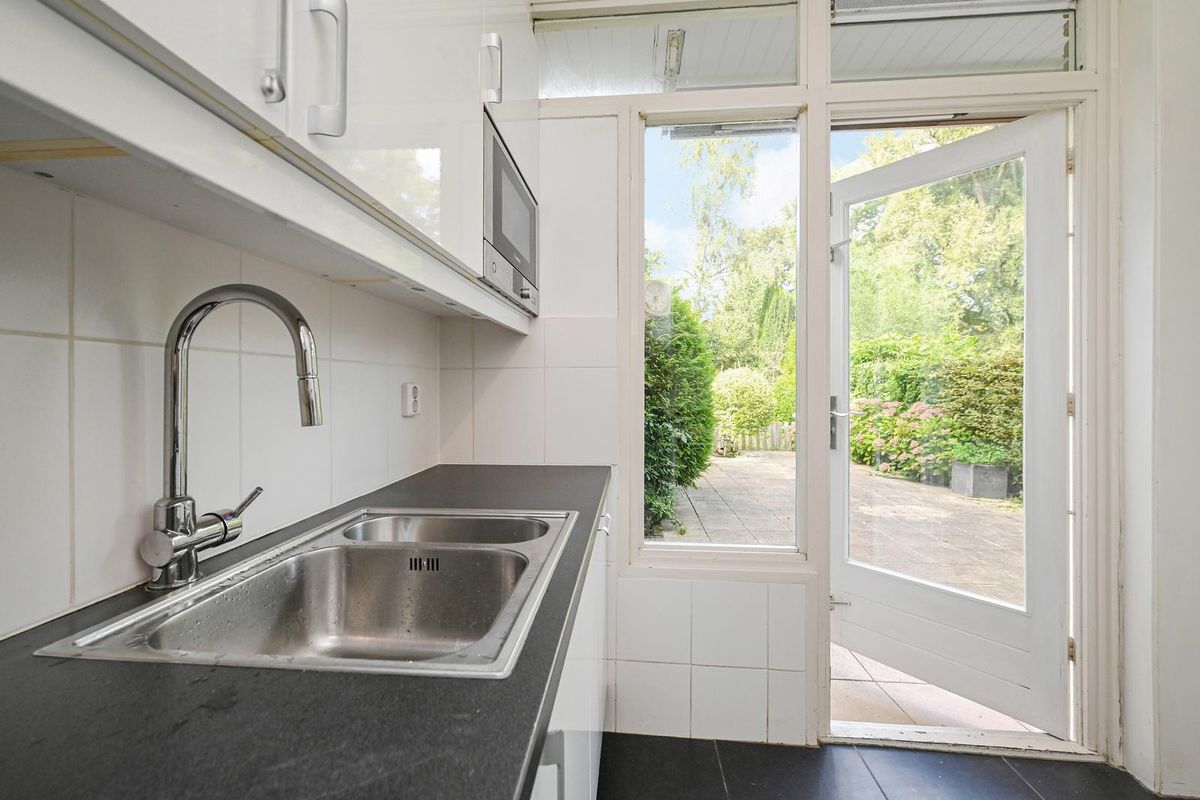 Voortuin, entree van de woning, ruime hal met garderobe en meterkast, praktische kelderruimte, modern toilet (2023), lichte woon-/eetkamer en keuken (2013) met inbouwapparatuur en doorloop naar de ruime achtertuin met berging.