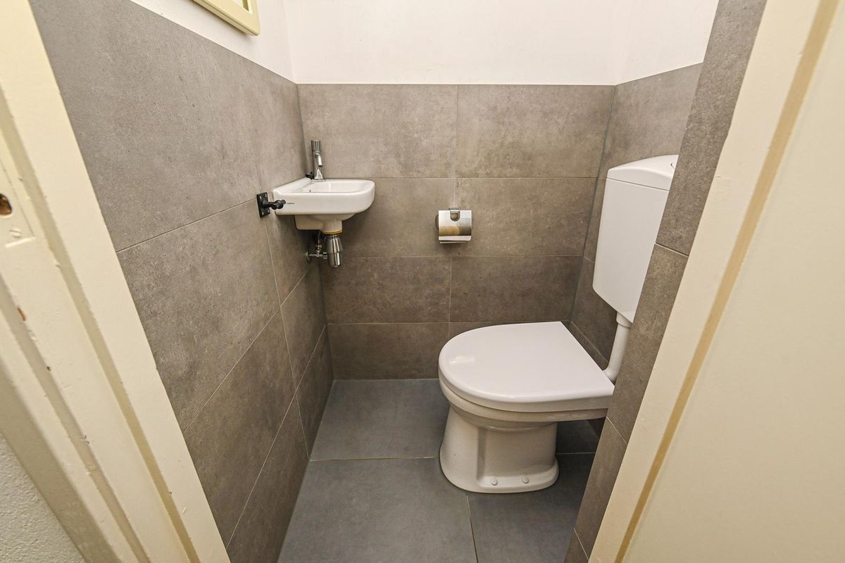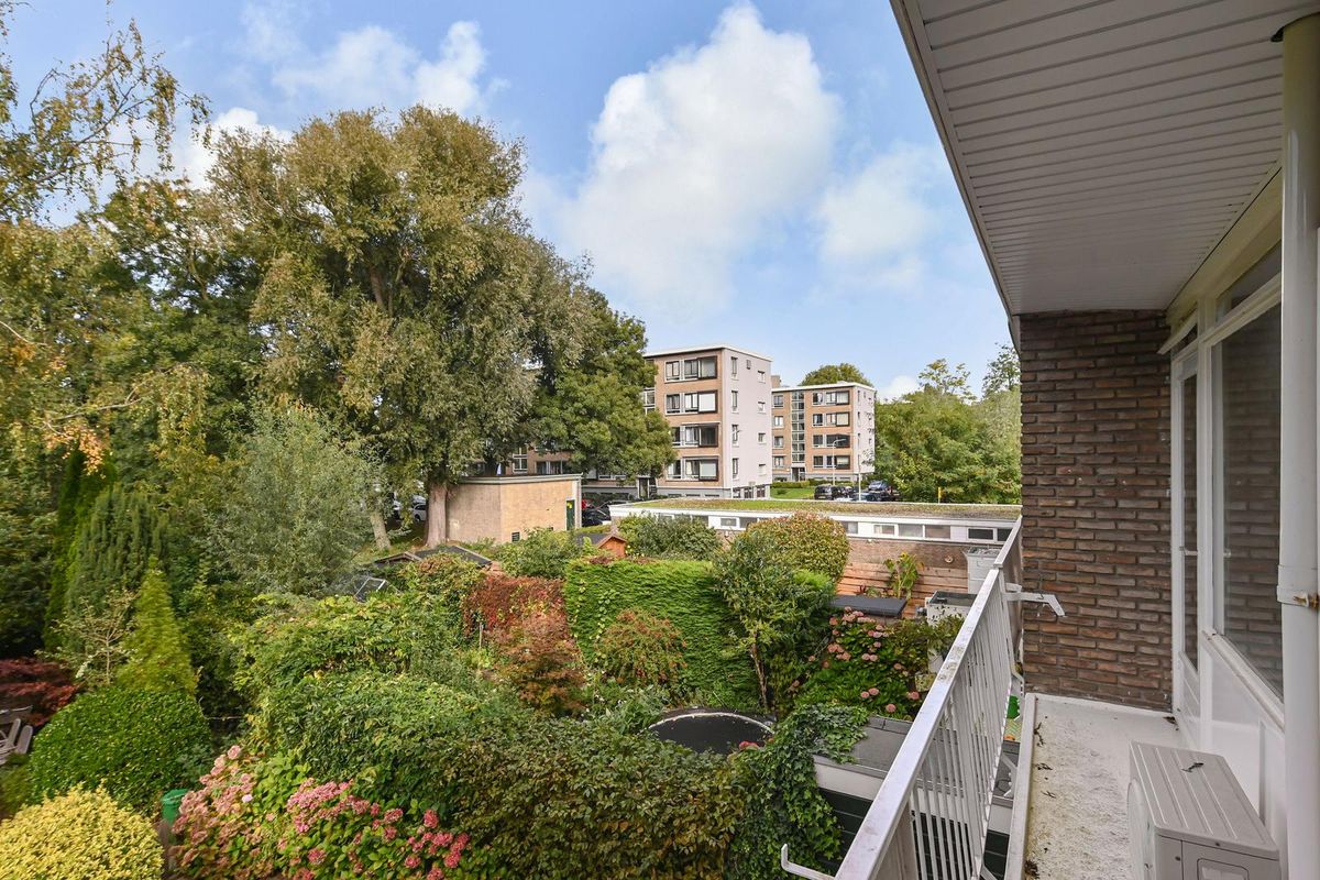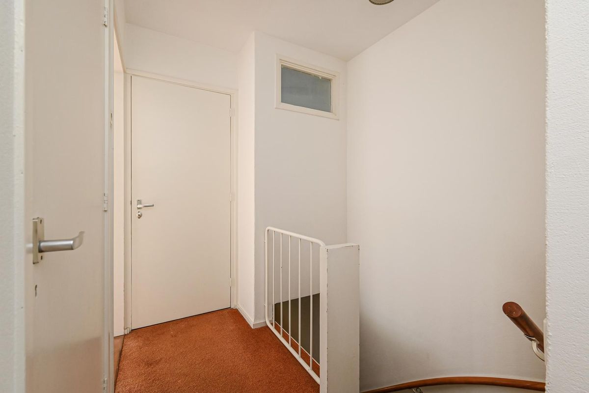 Via de trap bereik je de eerste etage met een overloop, inbouwkast, moderne badkamer (2023) met douche, wastafel en tweede toilet, en drie slaapkamers. Twee slaapkamers bieden toegang tot het achterbalkon over de volle breedte.