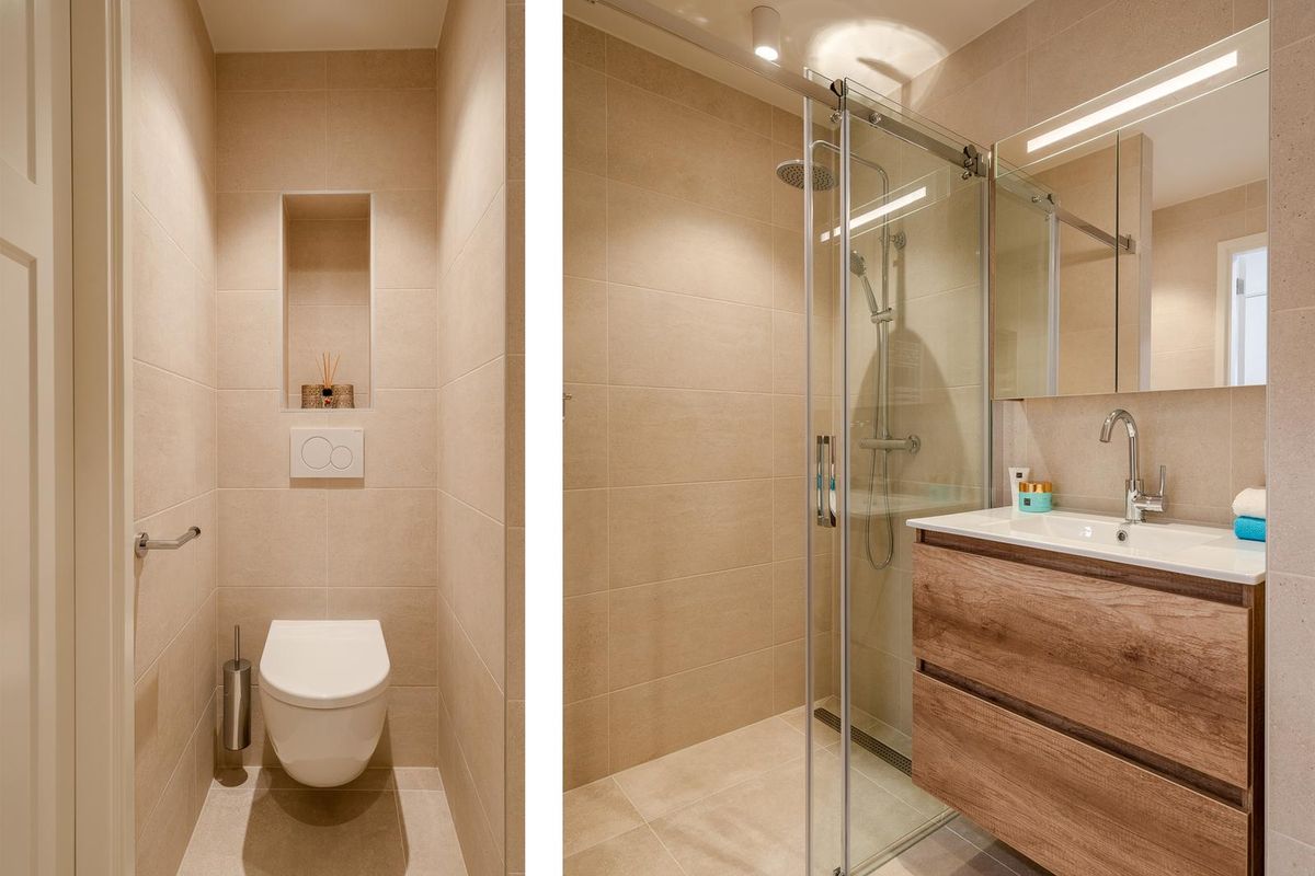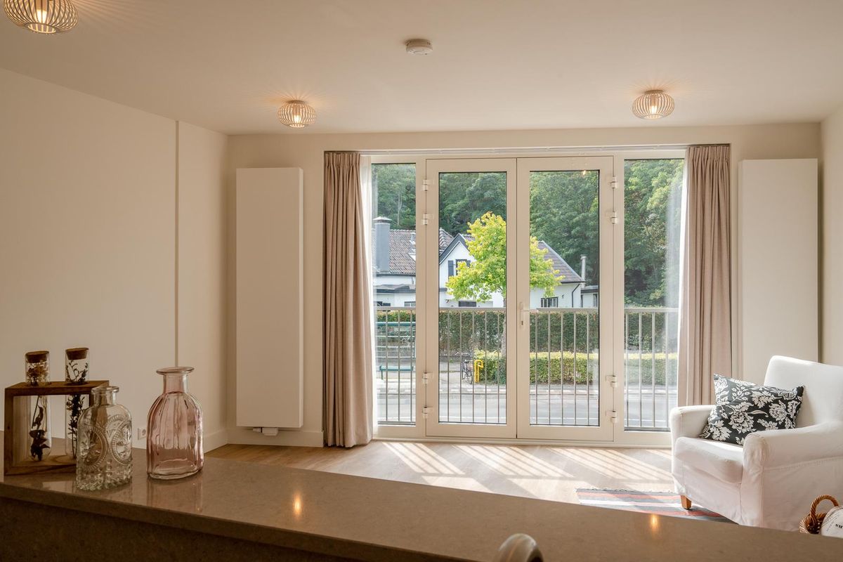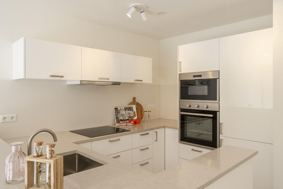 At the front is the living area, featuring French doors with a French balcony, where you can enjoy the afternoon and evening sun and a beautiful view of the greenery. The new and luxurious open-plan kitchen is equipped with various built-in appliances, including a fridge/freezer, induction cooktop, separate oven and microwave, dishwasher, and ample cupboard space with soft-close doors and drawers. The hall provides access to the additional work/hobby room, a spacious pantry/storage room with a coat closet, a laundry room with space for the washing machine and dryer, and an additional storage cupboard. The new and fully equipped bathroom features a vanity with a mirrored cabinet and lighting, a wall-hung toilet, a spacious walk-in shower with both hand and rain shower heads, mechanical ventilation, a designer radiator, and a separate cupboard housing the central heating boiler. At the rear of the apartment, in a quiet location, you'll find the spacious bedroom with a large built-in wardrobe. From here, you also have access to the balcony, where you can enjoy your morning coffee in the sunshine until early afternoon, and a pleasantly cool bedroom in the evening.