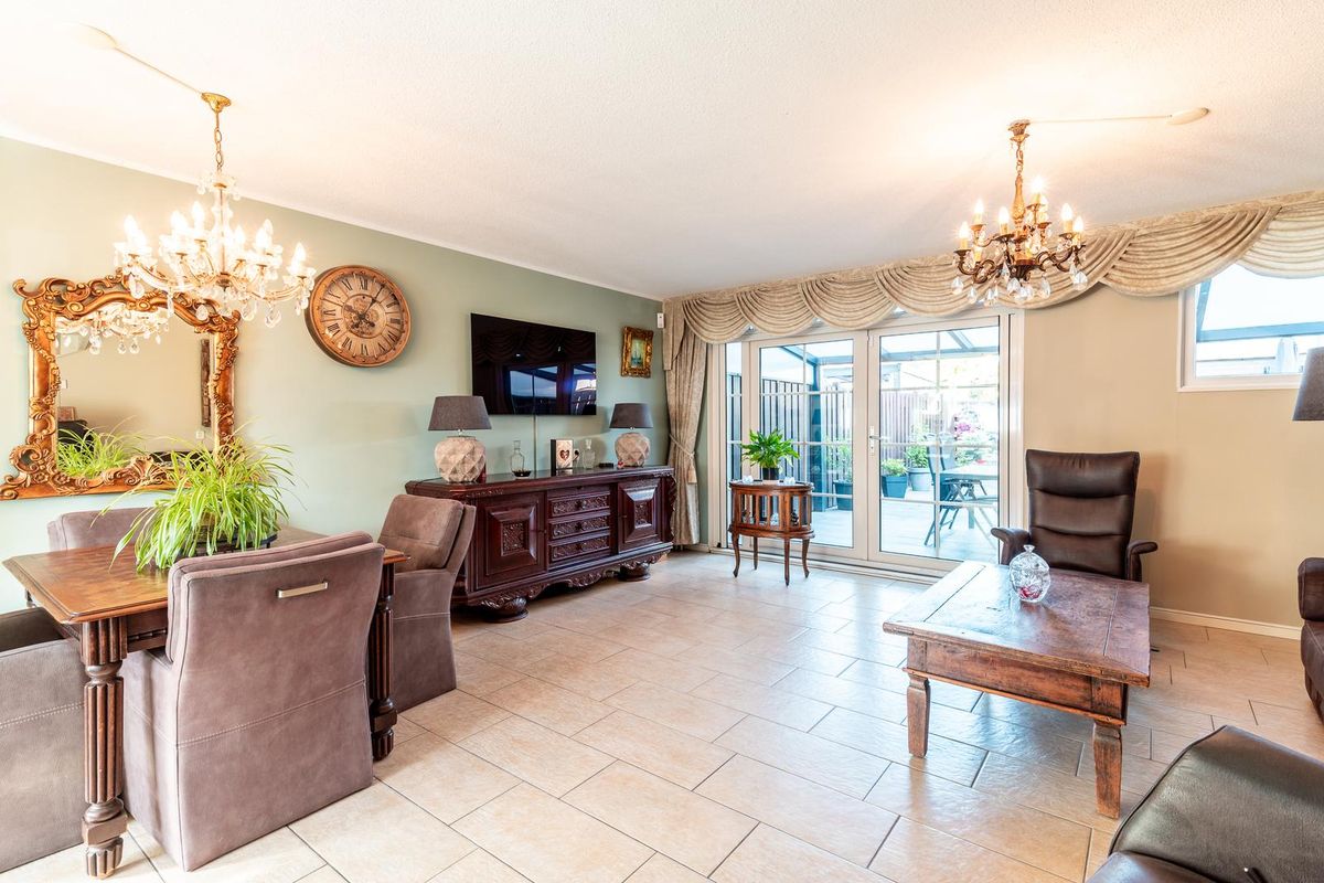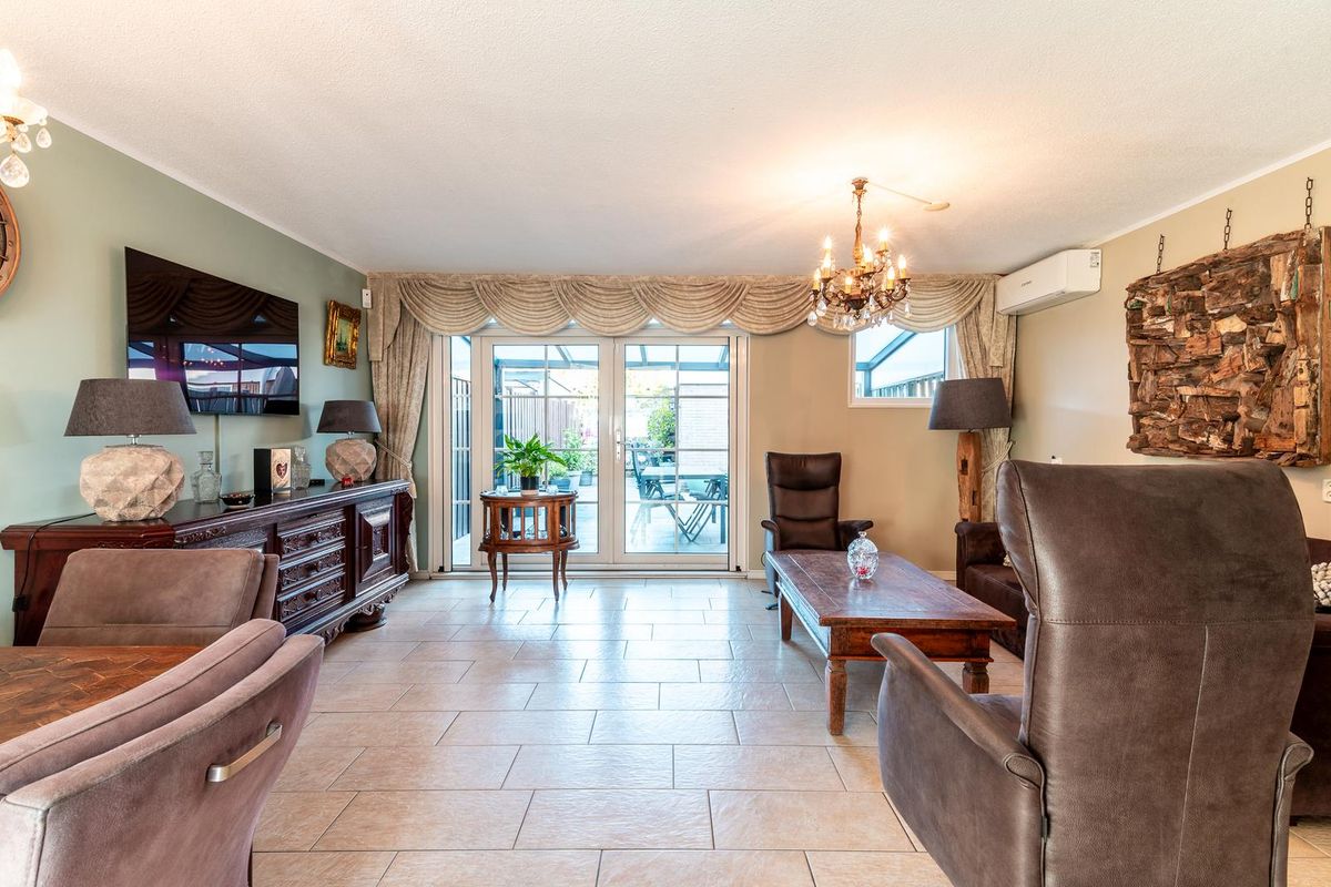 De woonkamer voelt ruim aan doordat de trapkast is weggehaald. Grote kunststof kozijnen (2022) en de kunststof dubbele openslaande deuren zorgen voor veel licht. De begane grond is afgewerkt met een nette tegelvloer inclusief vloerverwarming. Extra pluspunt is de airco die zowel kan koelen als verwarmen.