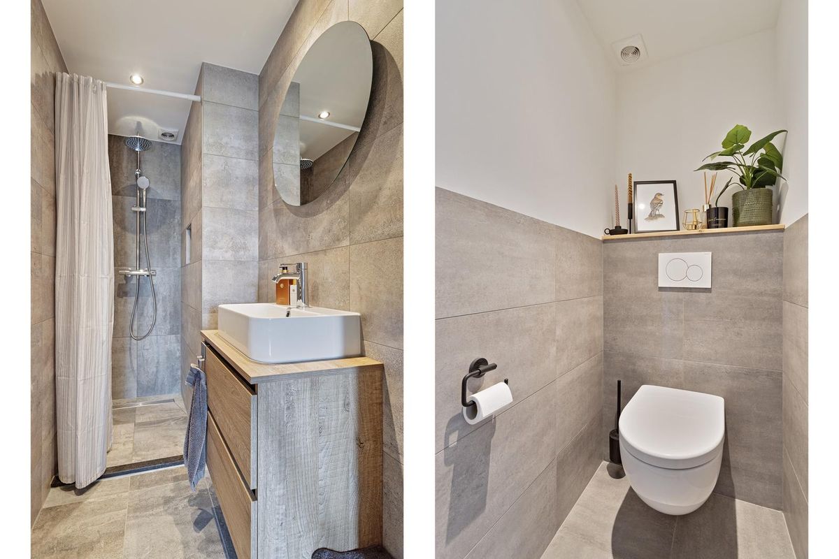 Het toilet (1m²) is eveneens vernieuwd en is voor de helft betegeld de pot is zwevend en is v.v. een Geberit inbouw reservoir.