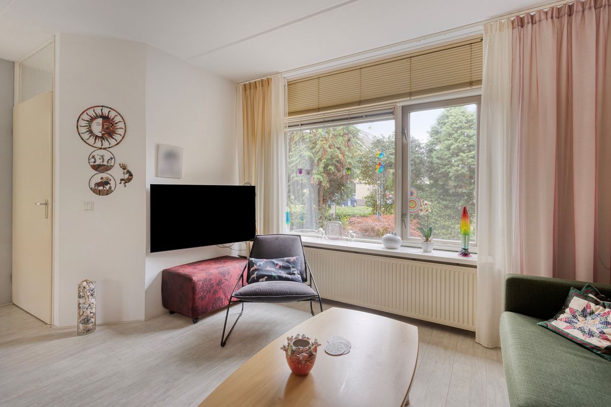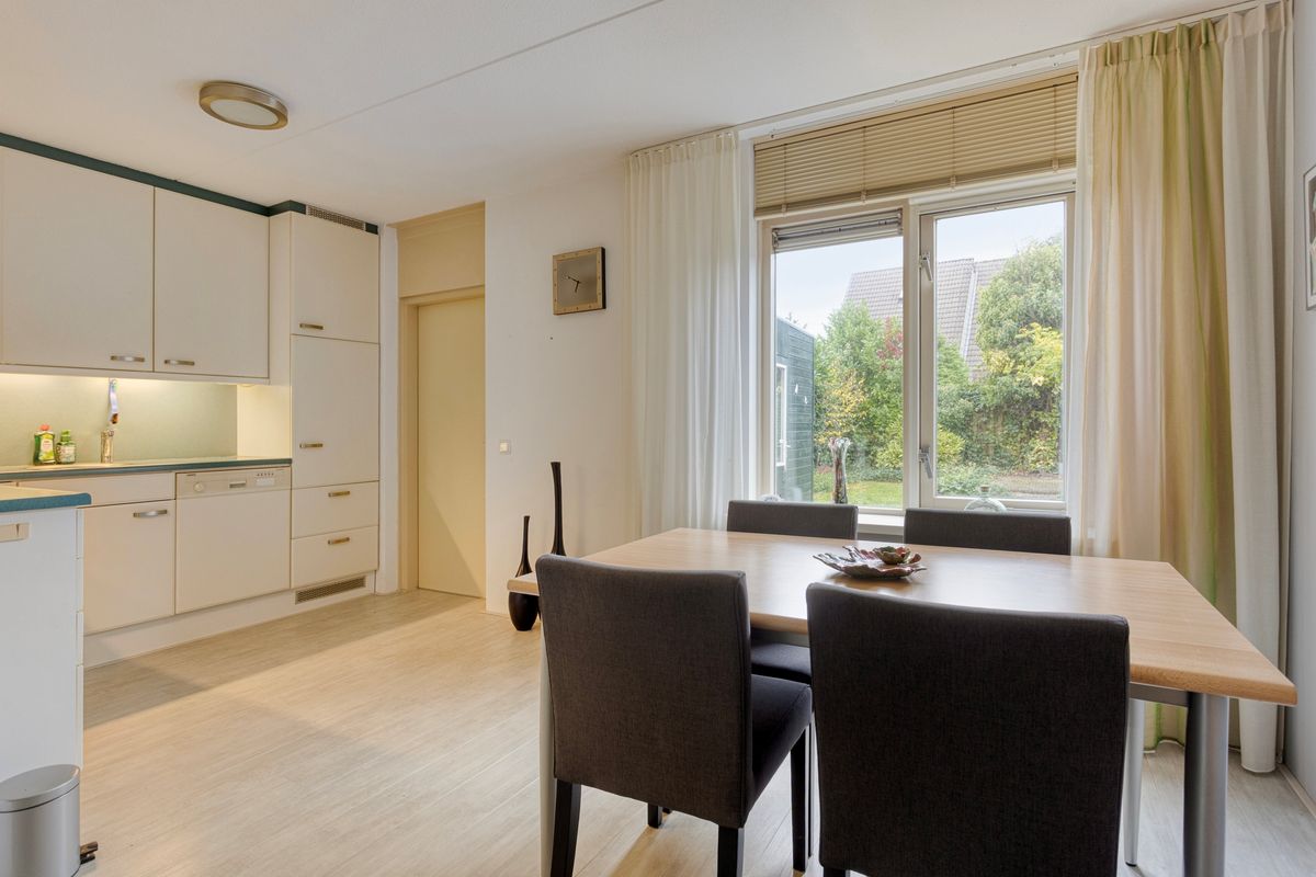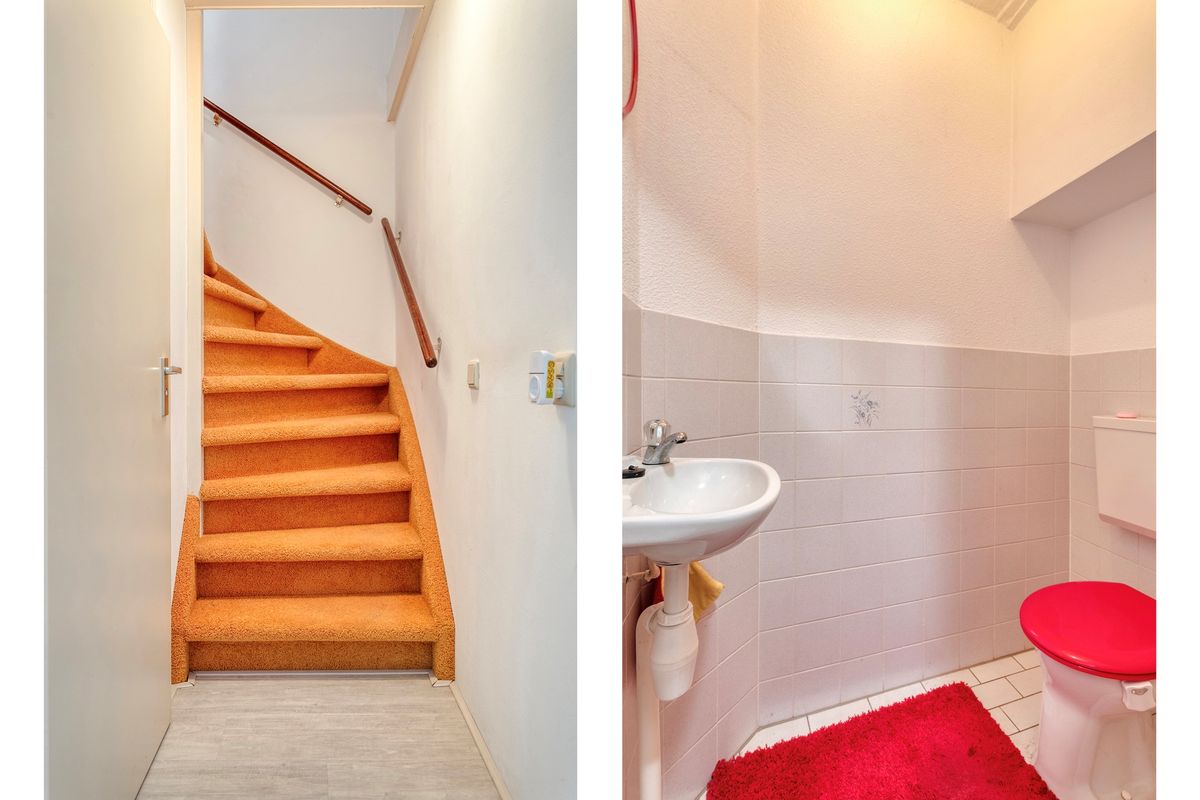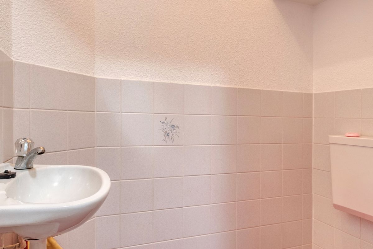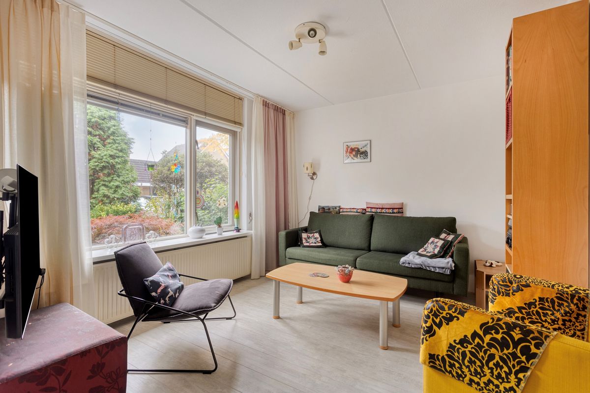 Entree met hal, meterkast en toilet. De lichte woonkamer heeft grote ramen en een prettige sfeer. De L-vormige keuken is praktisch ingericht en staat in verbinding met de bijkeuken, waar plek is voor de wasmachine en droger. Via de keuken loop je zo de ruime achtertuin in, ideaal voor lange zomeravonden of spelende kinderen. Naast de bijkeuken bevindt zich de schuur.