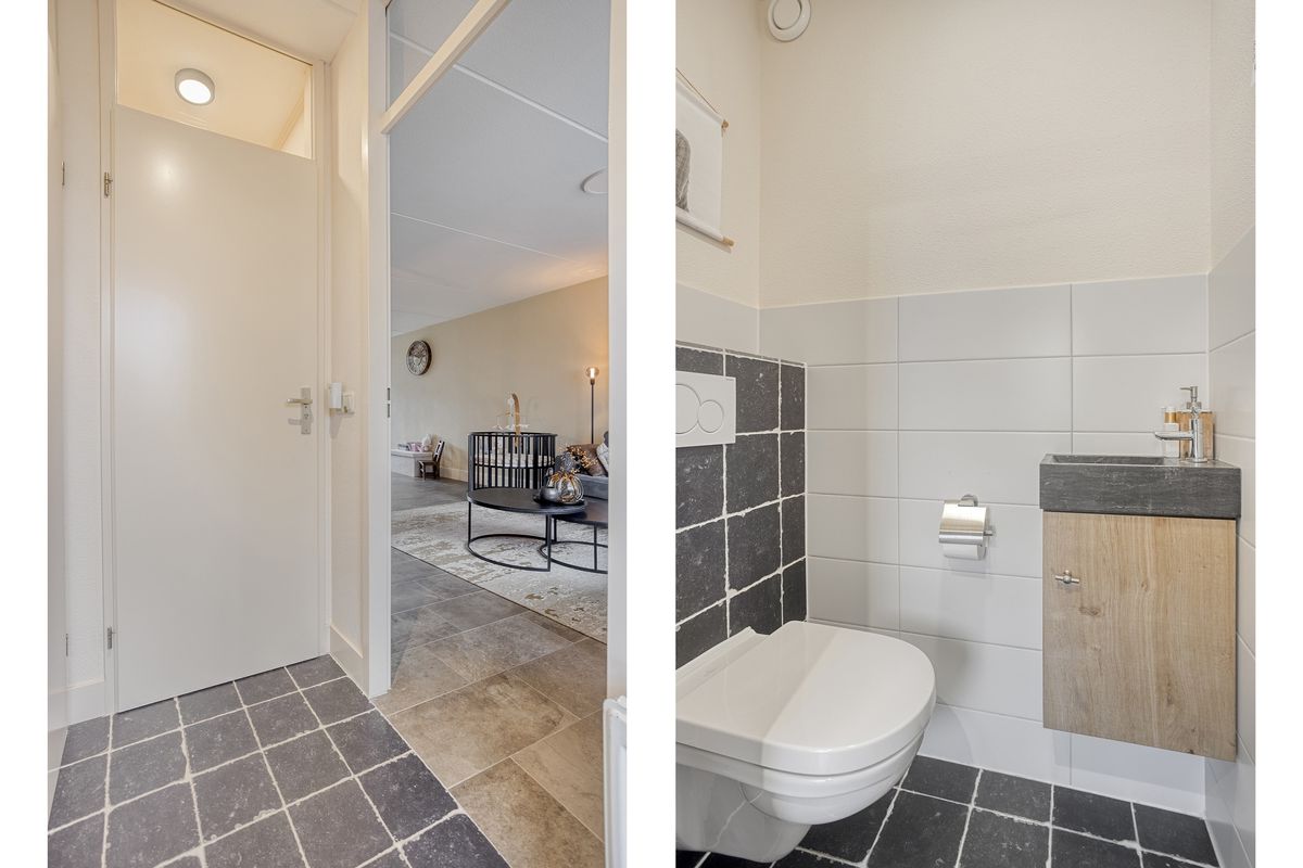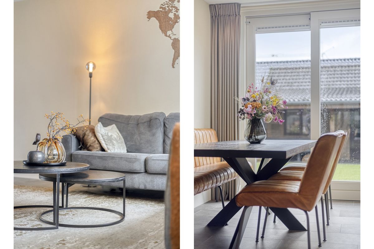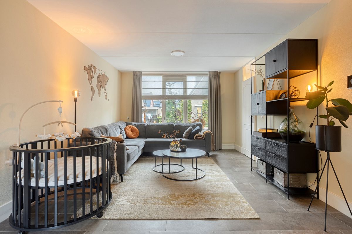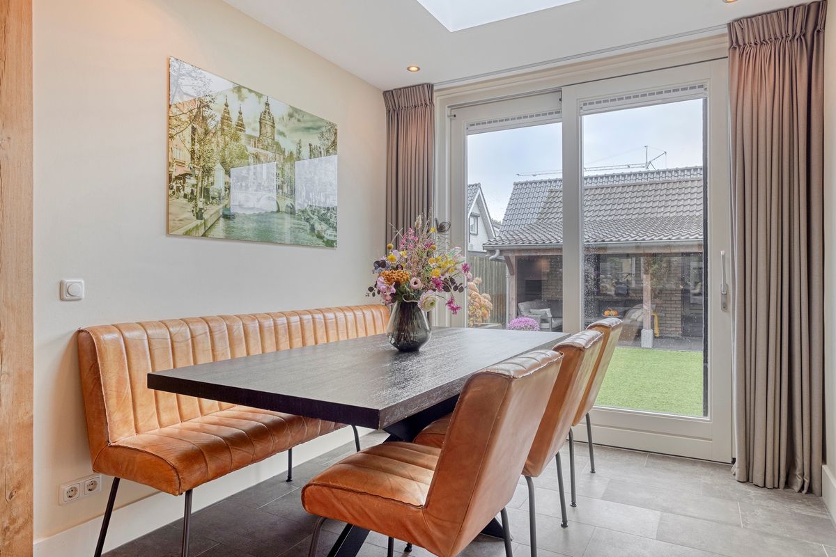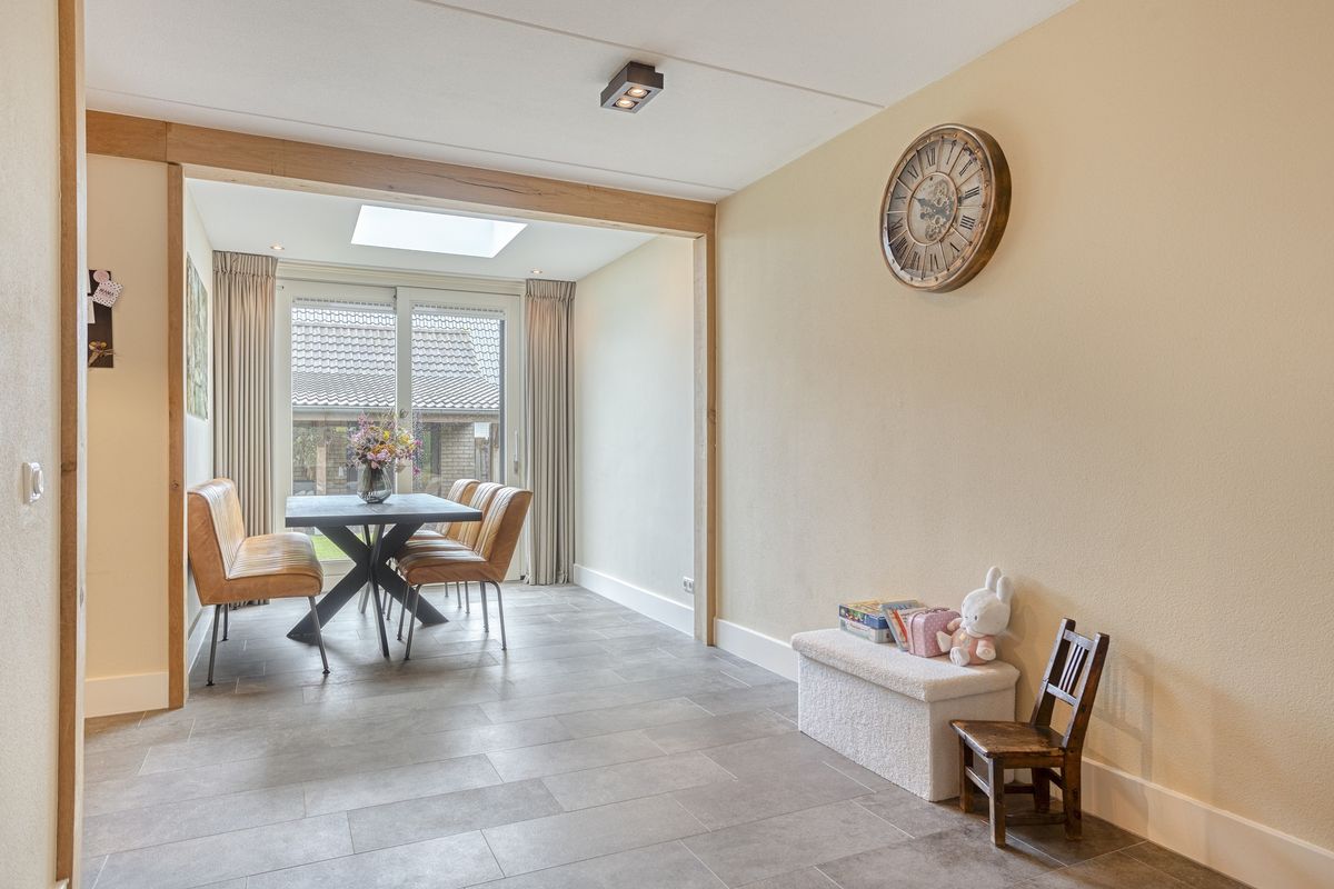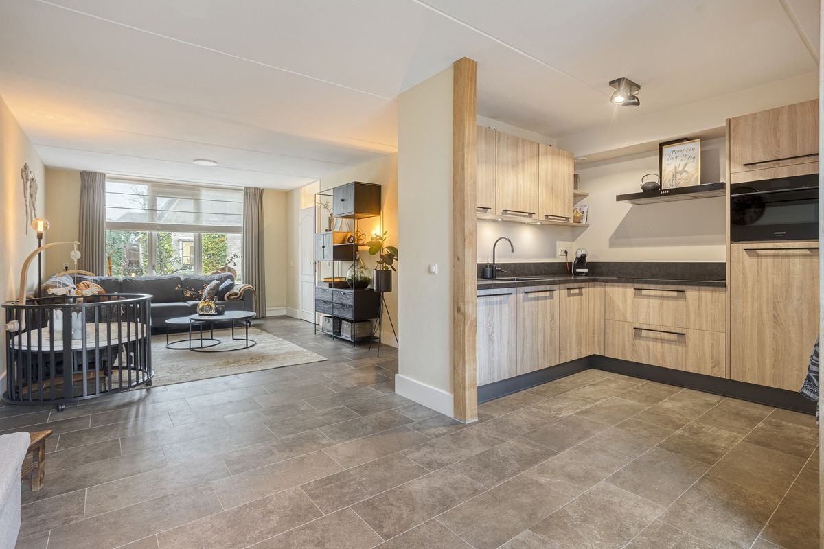 Je komt binnen via de hal met meterkast en zwevend toilet met fonteintje. De woonkamer strekt zich uit over de volledige lengte van de woning, met aan de voorzijde een gezellig zitgedeelte en achterin (in de uitgebouwde ruimte) een royale plek voor de eettafel. Door de schuifpui valt er veel daglicht binnen en heb je een mooi uitzicht op de tuin. De halfopen keuken (2019) is opgesteld in een hoek en uitgerust met een hardstenen aanrechtblad en diverse inbouwapparatuur, waaronder een Siemens oven en kookplaat die recent zijn vernieuwd. Aansluitend vind je de bijkeuken met praktische kastenwand. Centraal in de woning bevindt zich nog een tussenhal met trapopgang en handige trapkast. De begane grond is voorzien van een fraaie tegelvloer met vloerverwarming: comfortabel én onderhoudsvriendelijk.
