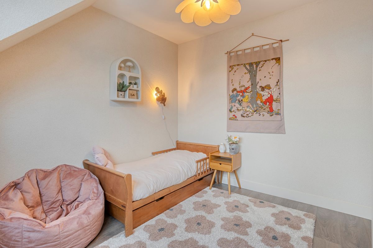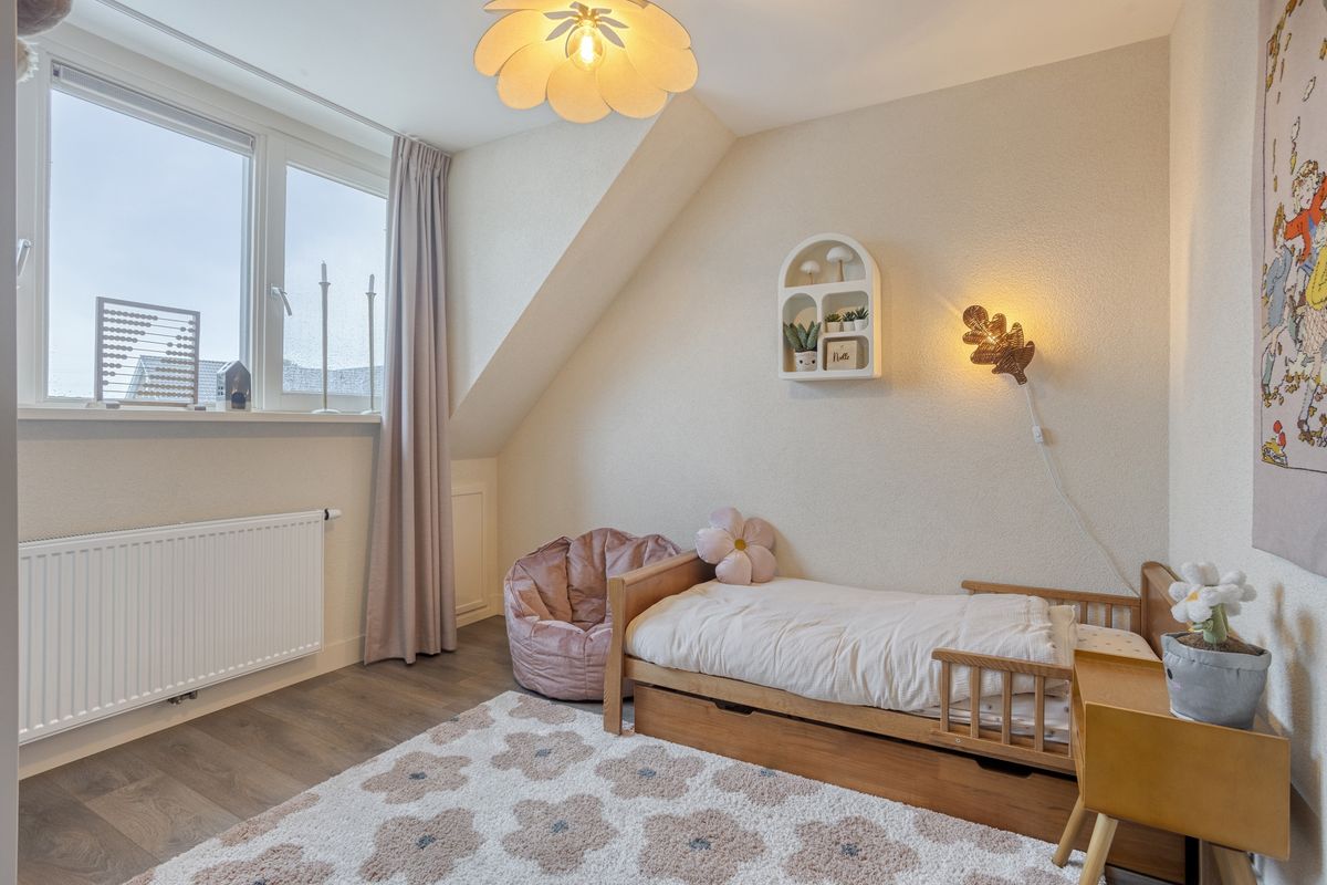 De overloop geeft toegang tot drie slaapkamers, waarvan één met een grote dakkapel aan de achterzijde. Hierdoor is de ruimte op deze verdieping opvallend ruim en licht. De moderne badkamer (ook met dakkapel) is voorzien van een douche, wastafelmeubel, tweede zwevend toilet en vloerverwarming. Op warme dagen zorgt de airco voor een aangenaam binnenklimaat.