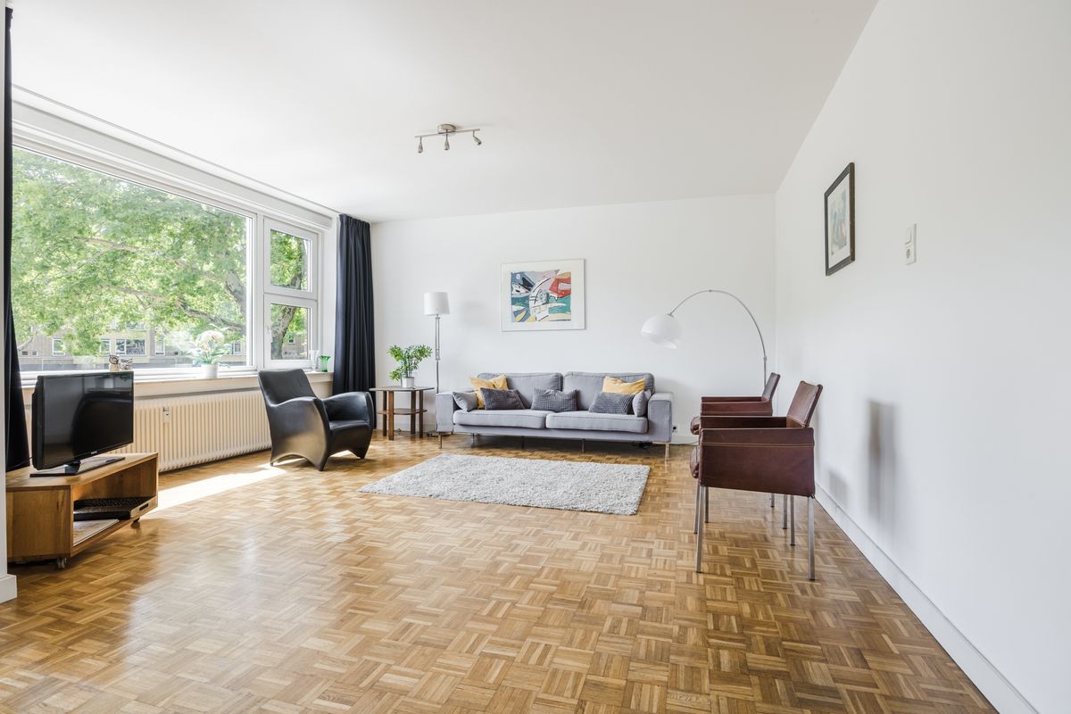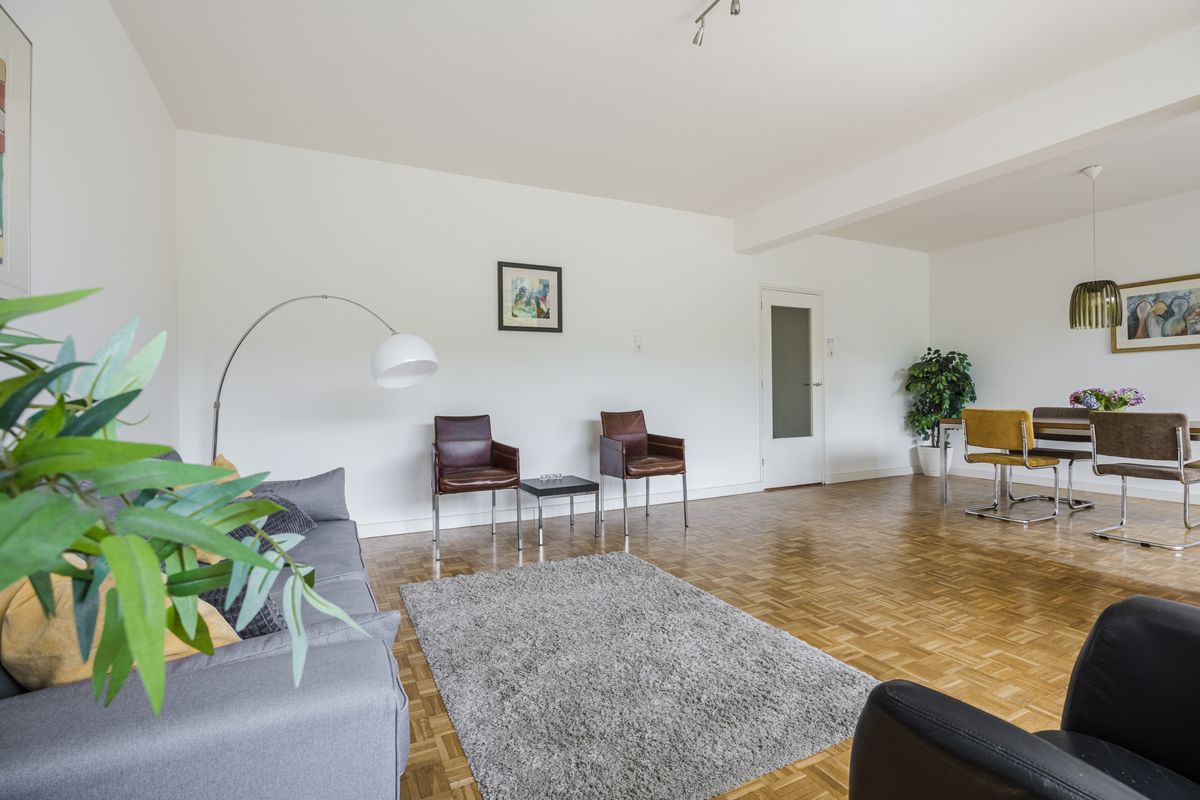 Via een overdekte galerij komt u bij het appartement. De ruime woonkamer (ca. 34 m2) is ingedeeld in een woon- en eetgedeelte Voorheen waren dit twee kamers. Door de grote ramen heeft de woonkamer veel lichtinval. De woonkamer is geheel gestuukt en voorzien van een nette parketvloer. Via het eetgedeelte heeft u toegang tot het balkon (ca. 4 m2) dat op het zuiden ligt. De keuken ligt aan de galerijkant van de woning en is voorzien van een vaatwasser, 4-pits elektrische kookplaat, oven, koel/vriessysteem, afzuigkap, een spoelbak en voldoende kast- en werkruimte.