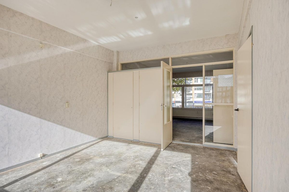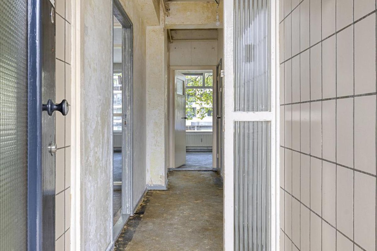 Het appartement ligt op de eerste verdieping van een karakteristiek jaren ’50-complex en beschikt over een lichte voor- en achterkamer, een slaapkamer en een dichte keuken. Er zijn volop mogelijkheden om de indeling te verbeteren. Denk bijvoorbeeld aan het verplaatsen van de keuken naar de woonkamer om zo een heerlijke open leefruimte te creëren, en een fijne (thuis)werkplek op de huidige keukenplek.