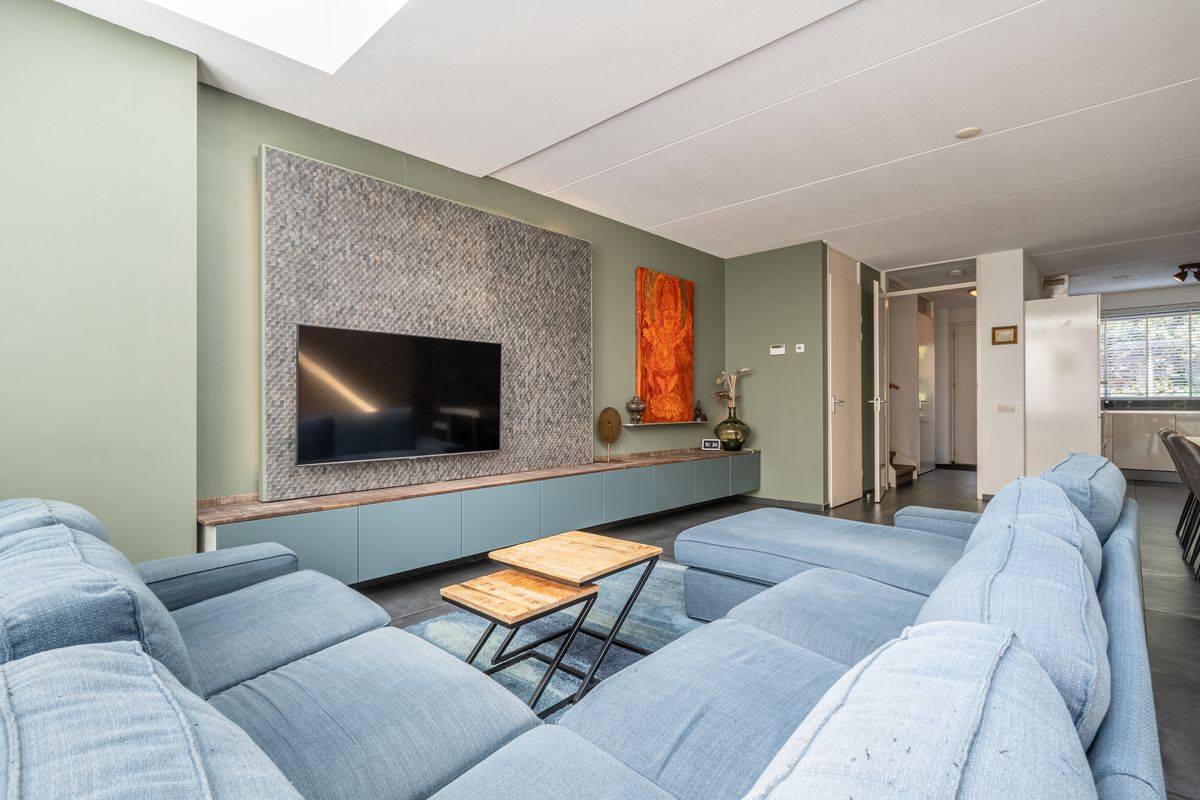1. Uitgebouwde woonkamer (2018) met vloerverwarming en tuindeuren naar de fraai vernieuwde tuin