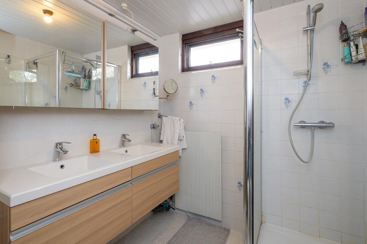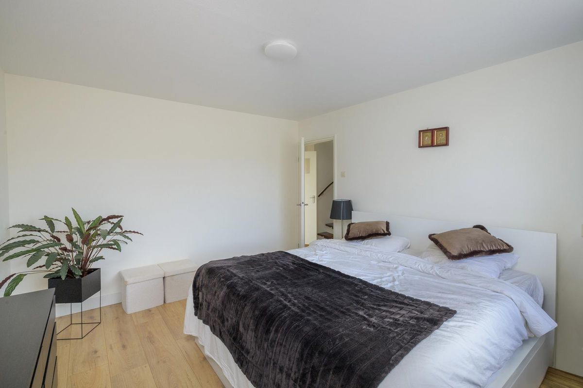 Overloop met trapopgang naar de tweede verdieping. Aan de achterzijde bevindt zich een ruime ouderslaapkamer en een 2e slaap/-werkkamer. Aan de voorzijde bevindt zich nog een ruime 3e slaapkamer. Geheel betegelde badkamer met douchecabine met thermostaatkraan, 2e toilet, breed dubbel wastafelmeubel, grote spiegelkast en daglichttoetreding. Deze verdieping is net als de begane grond voorzien van een fraai visgraat-pvc-vloer.