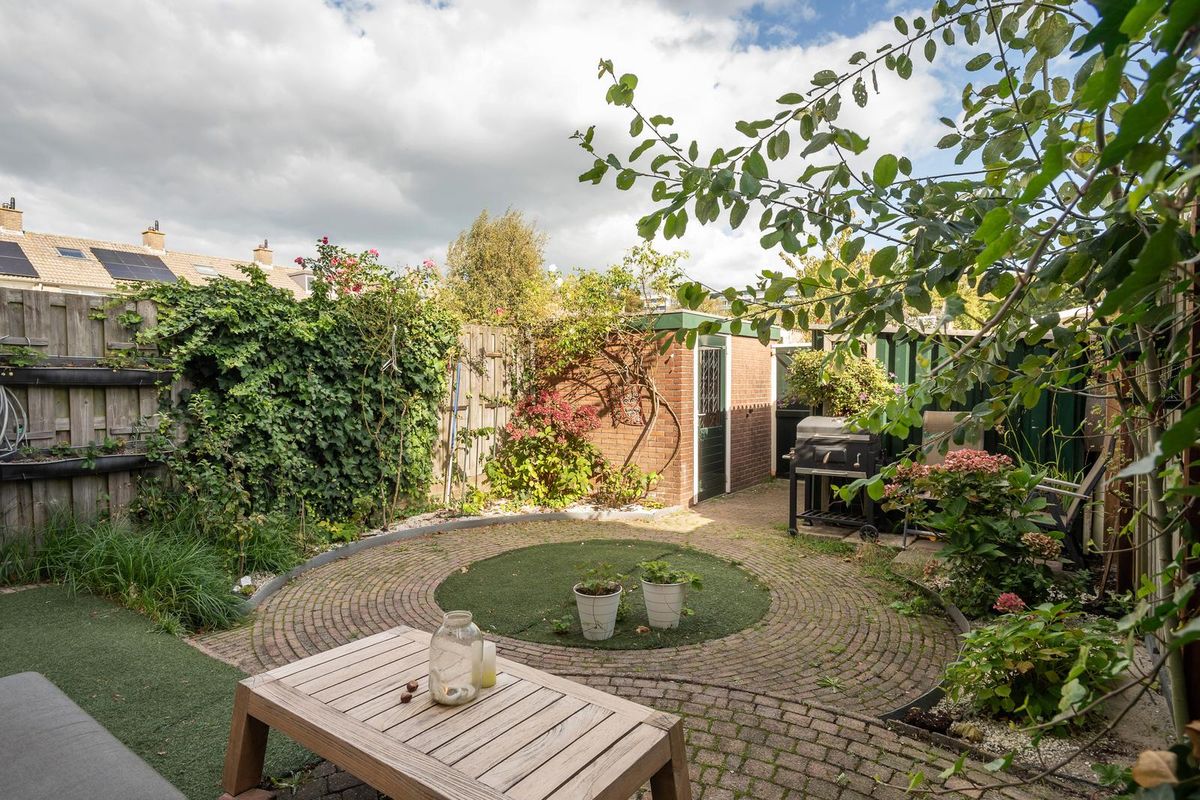 Zonnige achtertuin op het Zuid-Oosten met een stenen schuur,