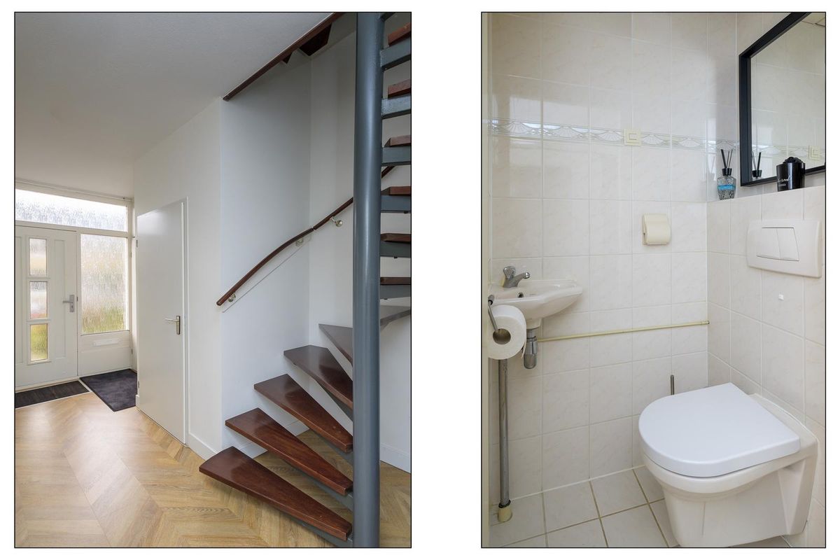 Entree, gang met meterkast, vaste kast, toegang tot een toiletruimte en de woonkamer en trapopgang naar de eerste verdieping. Via de hal bereikt u de sfeervolle doorzon-woonkamer met pvc-visgraatvloer met strak afgewerkt plafond en -wanden. De open keuken bevindt zich aan de tuinzijde en is voorzien van een moderne opstelling (2021) en diverse inbouwapparatuur waaronder een inductie-kookplaat met afzuigkap, combi-oven en dubbele spoelbak. Deur naar de zonnige achtertuin welke is gelegen op het Zuid-Oosten en voorzien van stenen schuur, een tweede berging en poort naar een achterom.