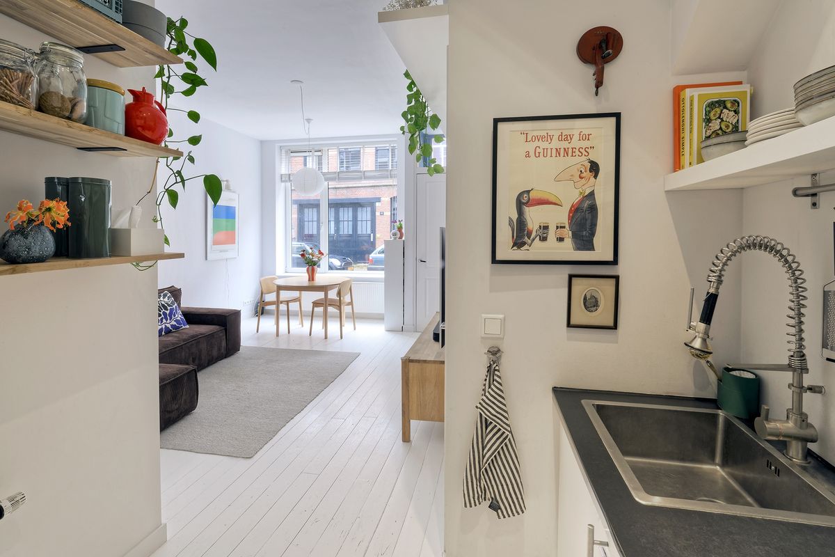 Je stapt binnen via je eigen voordeur op straatniveau lekker Amsterdams.