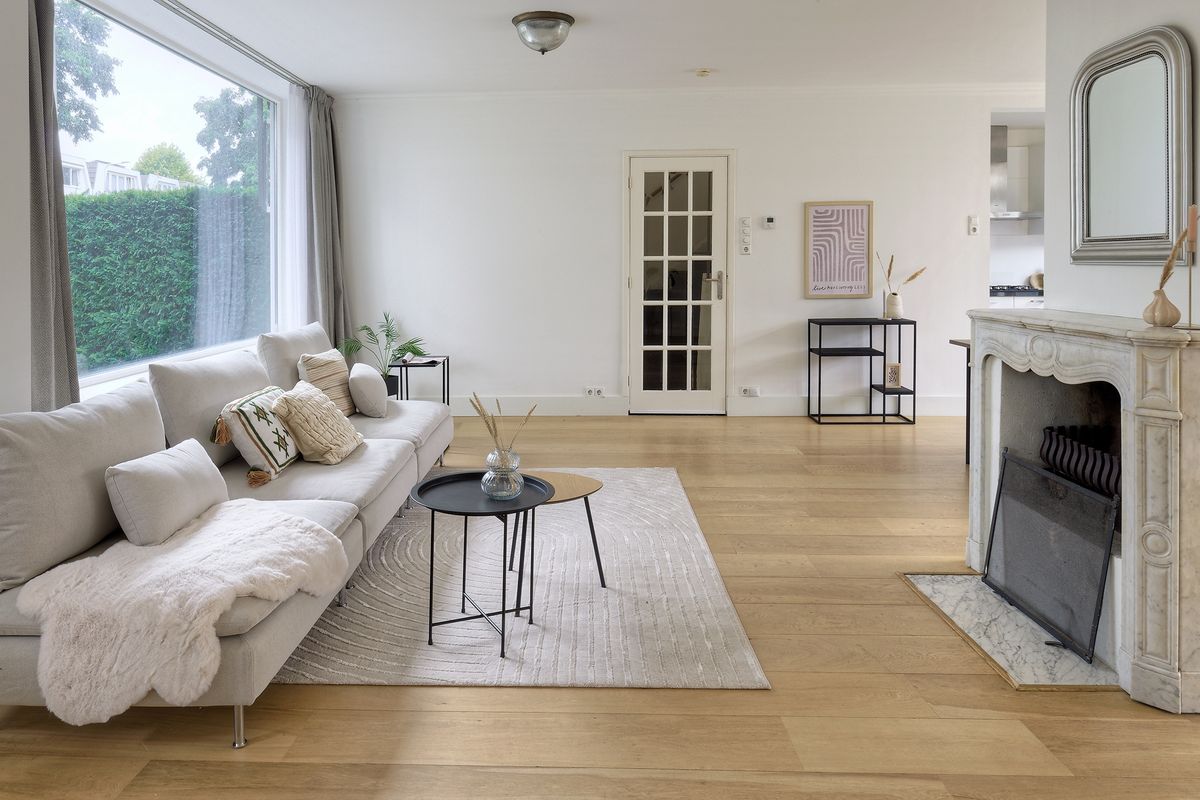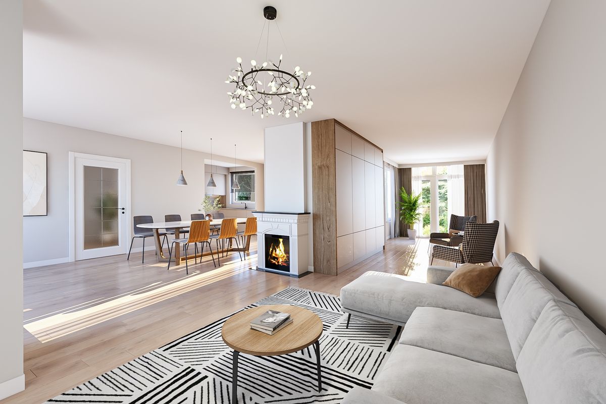 De ruime en lichte living vormt het hart van de woning. Dankzij de grote raampartijen en de sfeervolle open haard is dit een plek waar het hele gezin graag samenkomt. De open keuken in U-opstelling is zowel functioneel als gezellig: voorzien van voldoende werkruimte en direct verbonden met de eethoek, ideaal voor drukke doordeweekse dagen én lange familiemaaltijden in het weekend.