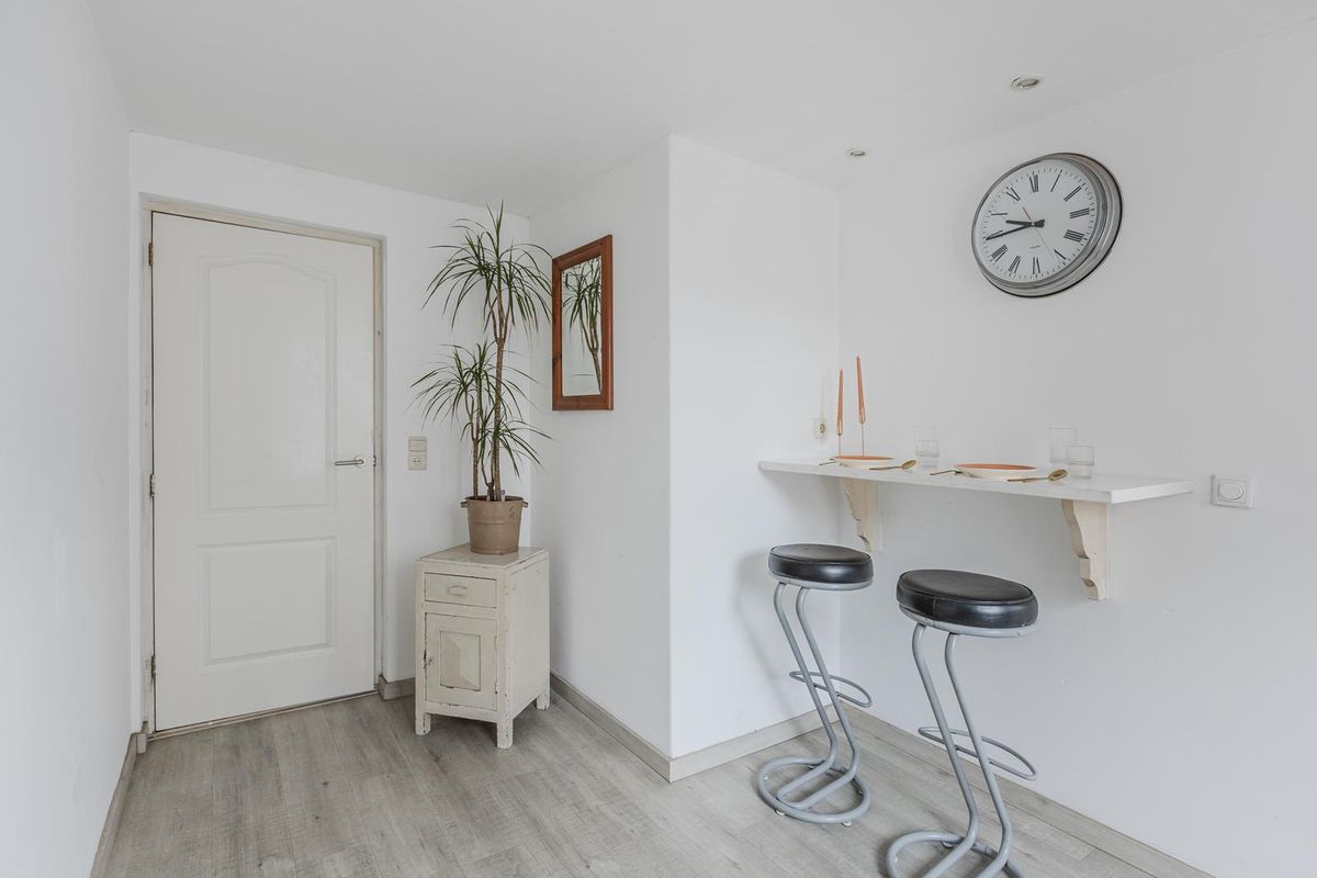 In de hal met tegelvloer en gestucte wanden en plafond bevindt zich de meterkast. Vanuit de hal heeft u toegang tot de badkamer en de eetkamer.