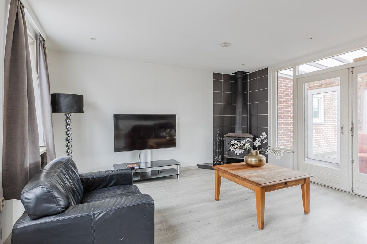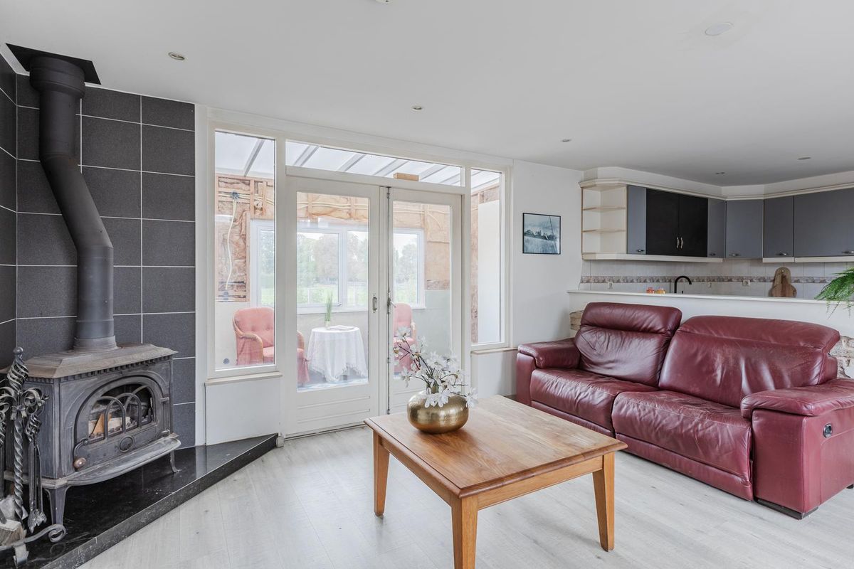 De woonkamer is heerlijk ruim en voorzien van een laminaatvloer en gestucte wanden en plafond. De woonkamer is sfeervol en voorzien van een houtkachel. Vanuit de woonkamer heeft u via openslaande deuren toegang tot de tuinkamer.