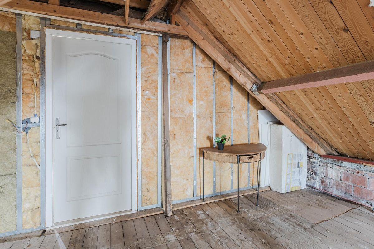 Deze ruimte is nu nog één met de overloop en kunt u naar eigen smaak volledig afwerken.