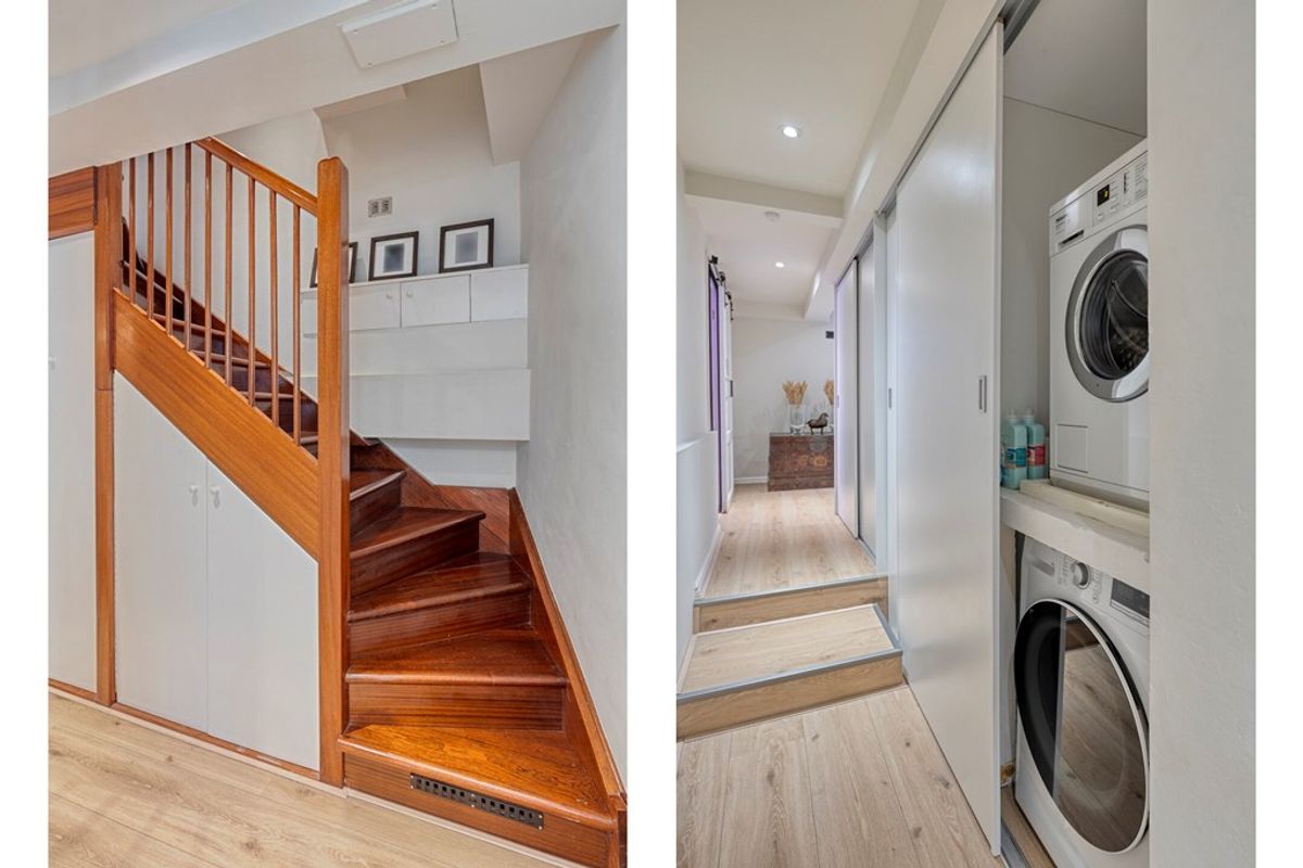 Als je de trap afkomt, valt meteen de ruimte op die dit hoge souterrain biedt. Een groot deel van het souterrain is namelijk tot onder de fundering uitgegraven. Aan de voorkant van het huis vind je een slaapkamer met ruime koekoek en twee openslaande deuren naar de binnenplaats, waardoor er veel licht binnenvalt. Via de lange en brede gang met inbouwkasten (ook voor de droger en de wasmachine), bereik je de badkamer met jetstream-bad, de tweede wc en dubbele wastafels. Aan de achterkant ligt een tweede slaapkamer. Ook deze heeft een brede koekoek voor optimale lichtinval.