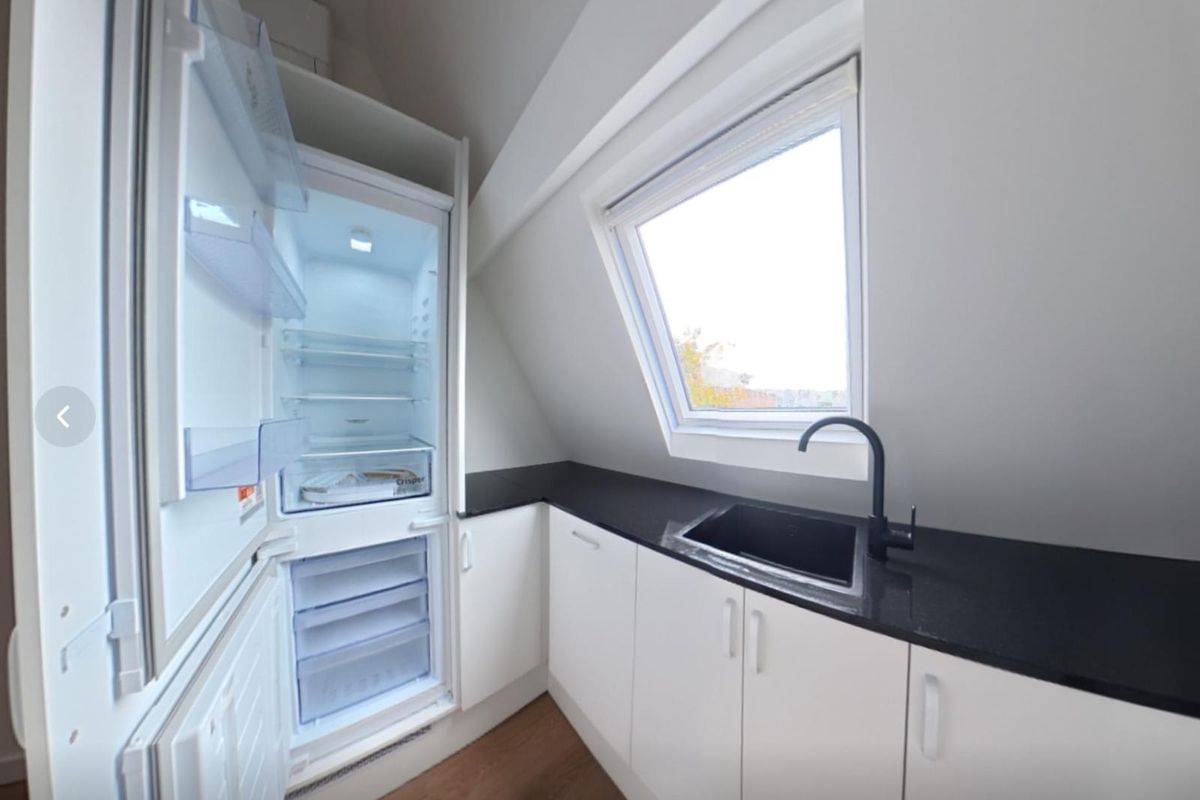 De keuken is compleet en luxe uitgevoerd met een inductiekookplaat met afzuiging, combi-oven, vaatwasser en koel-vriescombinatie. De ruime woon-/eetkamer is licht en biedt toegang tot het charmante Frans balkon.