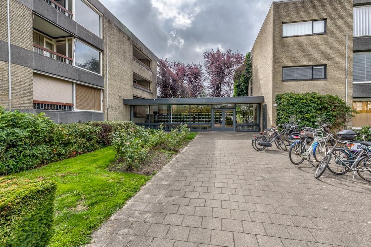 Door de centrale hal met brievenbussen, via enkele treden toegang tot de verdieping.