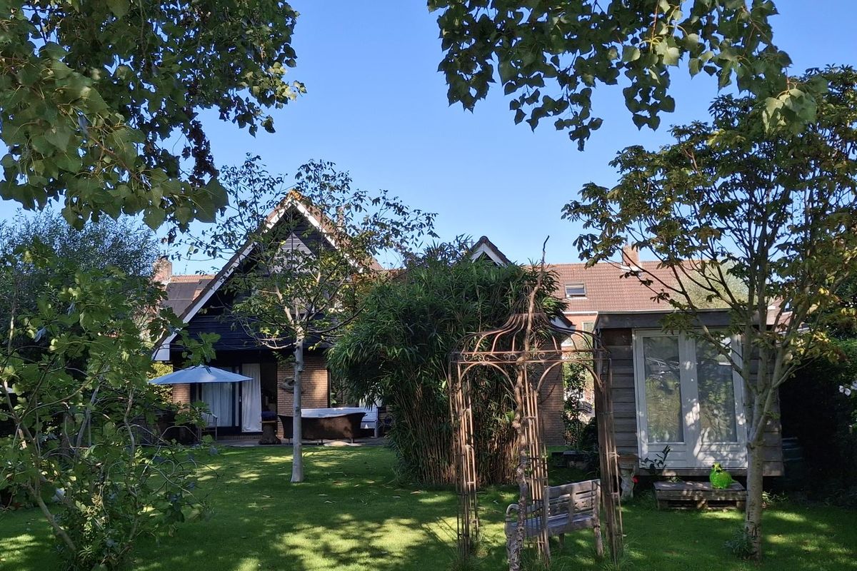 Achter de woning ligt een royale tuin met groot terras en diverse zitplekken. Hier bevindt zich tevens een buitenverblijf in de tuin met eigen douche, keukenblok en kachel – ideaal voor gasten of hobbyruimte. Daarnaast is er een apart tuinhuisje voor tuingereedschap.