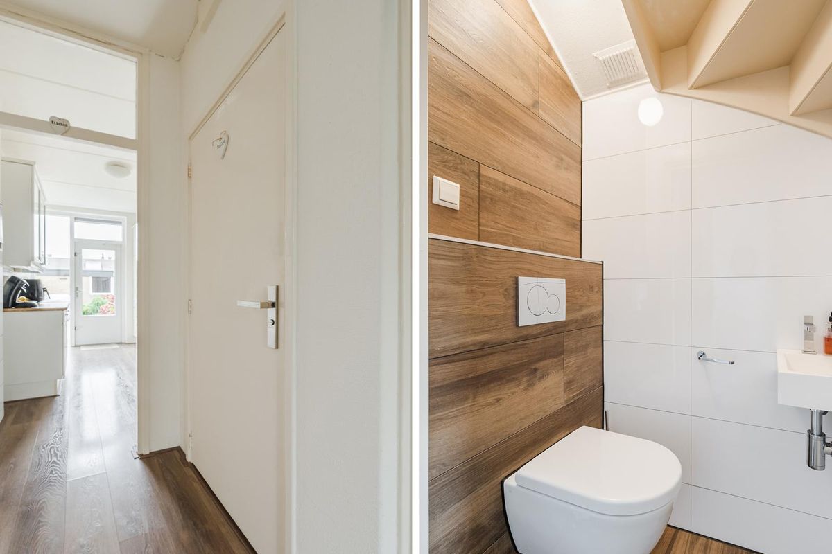 De ruime hal geeft toegang tot de meterkast, garderobekast, toiletruimte met fonteintje, keuken, woonkamer en de trapopgang. De woonkamer is een ruime doorzonkamer met grote raampartijen voor lekker veel lichtinval. Vanuit de woonkamer heb je zicht op zowel de voortuin als de achtertuin. De gehele begane grond beschikt over vloerverwarming en houten kozijnen met dubbel glas.