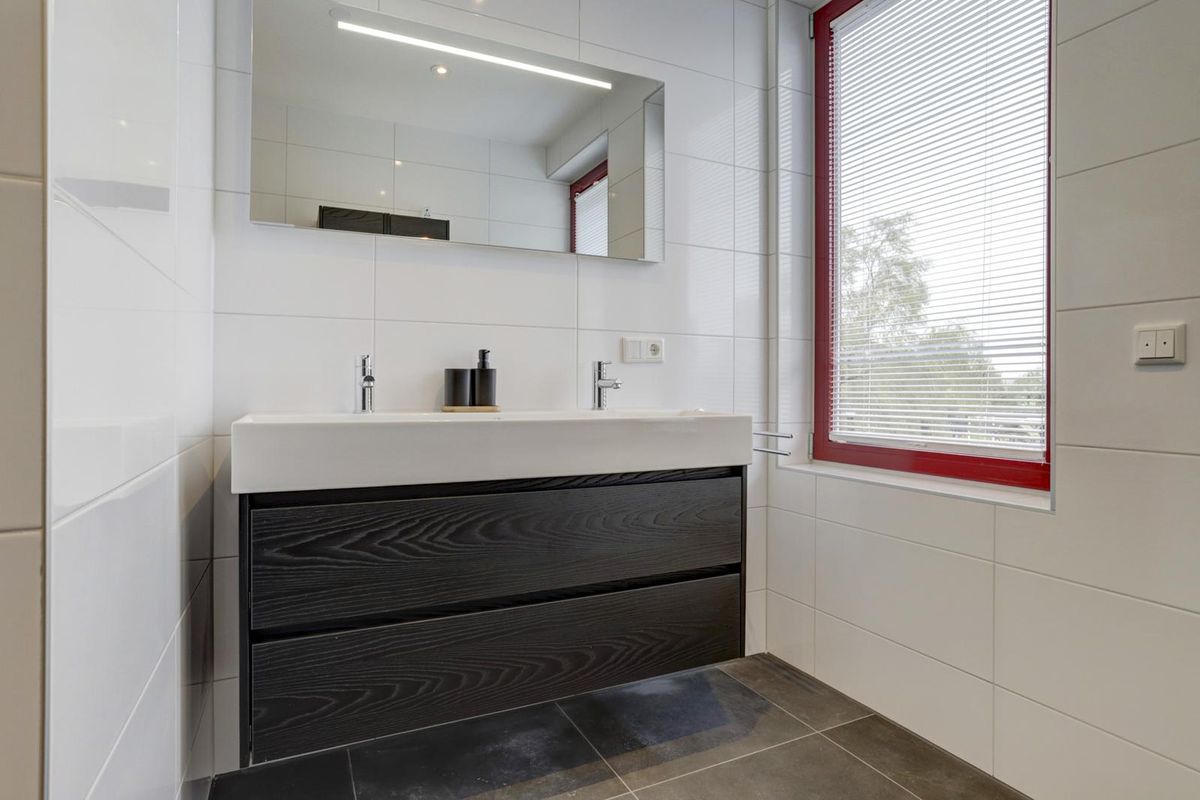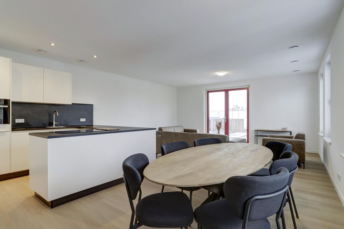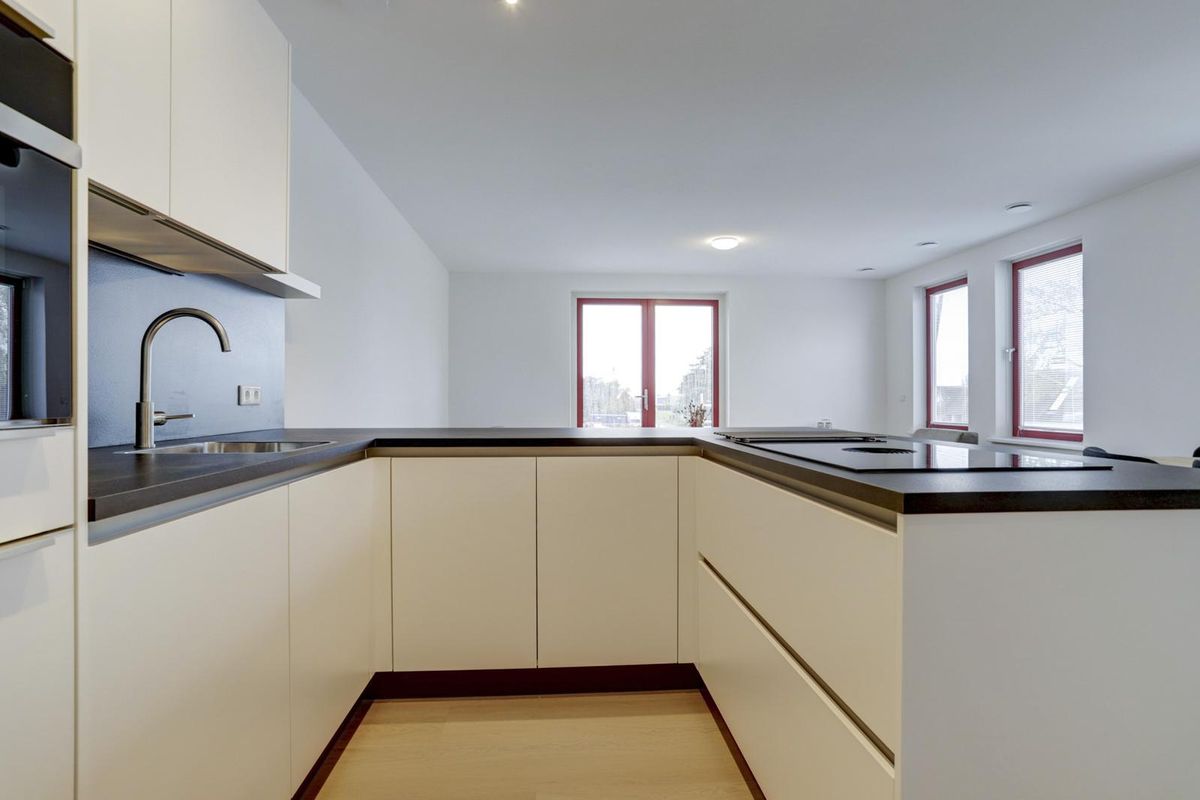 Bij binnenkomst in de hal heeft u toegang tot alle vertrekken. De lichte woonkamer biedt voldoende ruimte voor een comfortabele zithoek en eethoek. Via de openslaande deuren bereikt u het zonnige dakterras – een heerlijke plek om te ontspannen. De open keuken sluit perfect aan op de woonkamer en is voorzien van een luxe, moderne keukenopstelling met diverse inbouwapparatuur, waaronder een inductiekookplaat met geïntegreerde afzuiging, koelkast, vriezer, combi-oven/magnetron en vaatwasser.