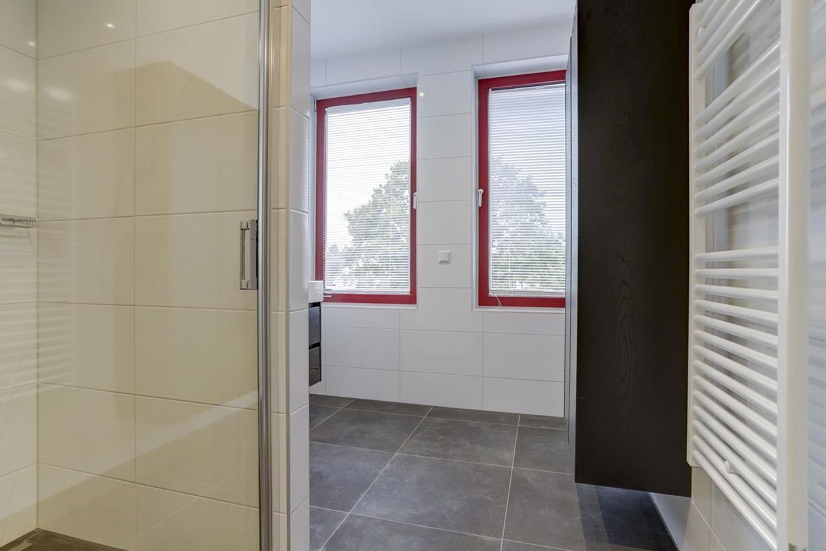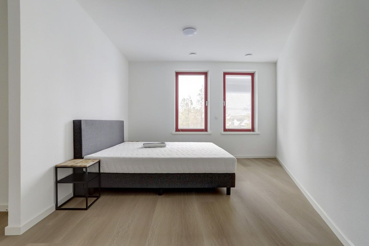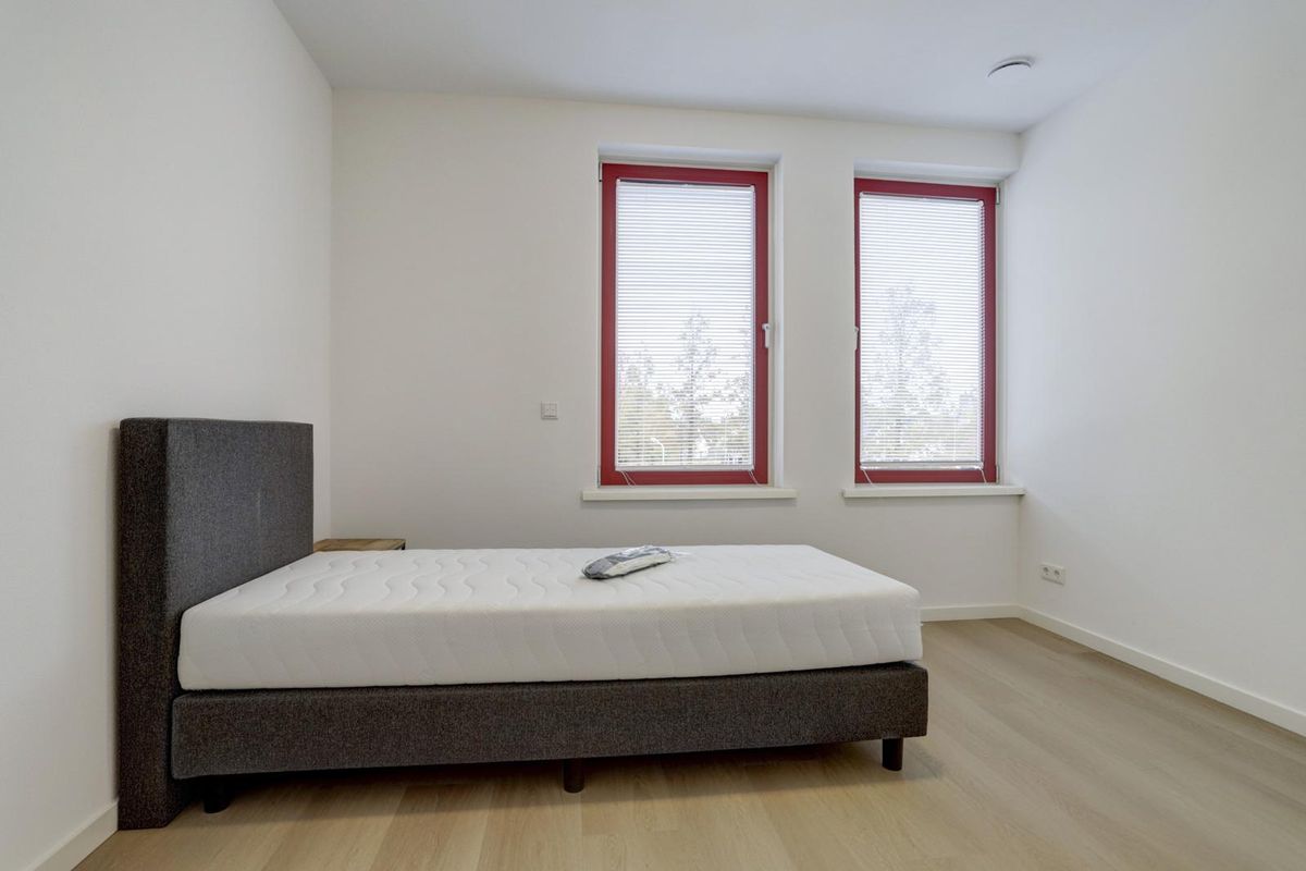 Het appartement beschikt over twee ruime slaapkamers en een moderne badkamer met douche en wastafelmeubel. Daarnaast zijn er een separaat toilet, een bijkeuken met witgoedaansluitingen en de meterkast aanwezig.