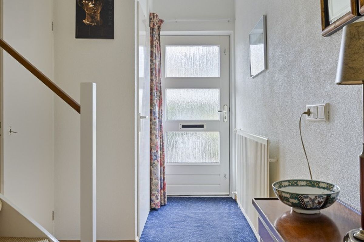 De begane grond verwelkomt je met een lichte hal met het toilet, trapkast en trapopgang.